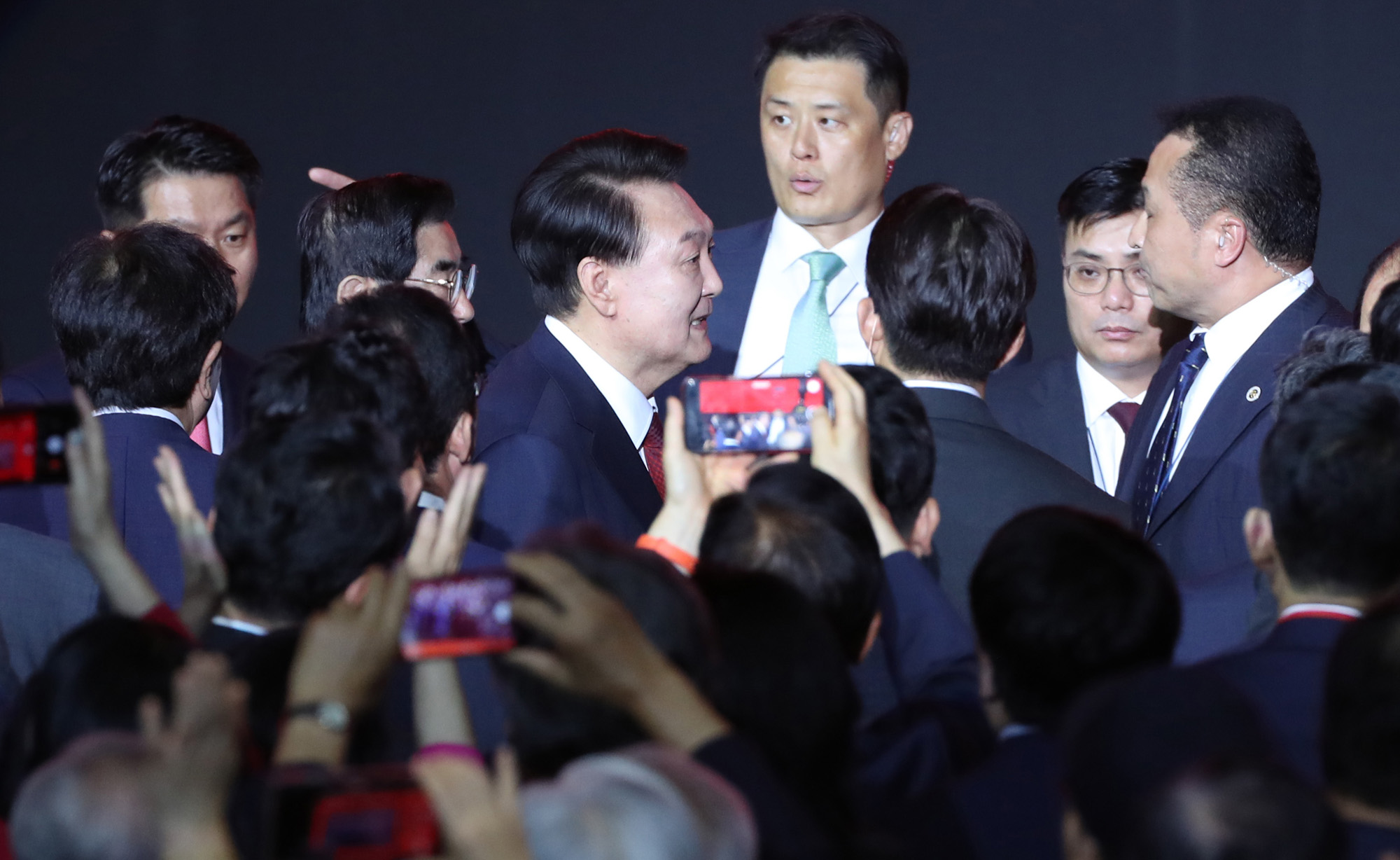 윤석열 대통령이 23일 오후 경기 고양시 킨텍스에서 열린 국민의힘 제4차 전당대회에 참석하고 있다. 2024.7.23