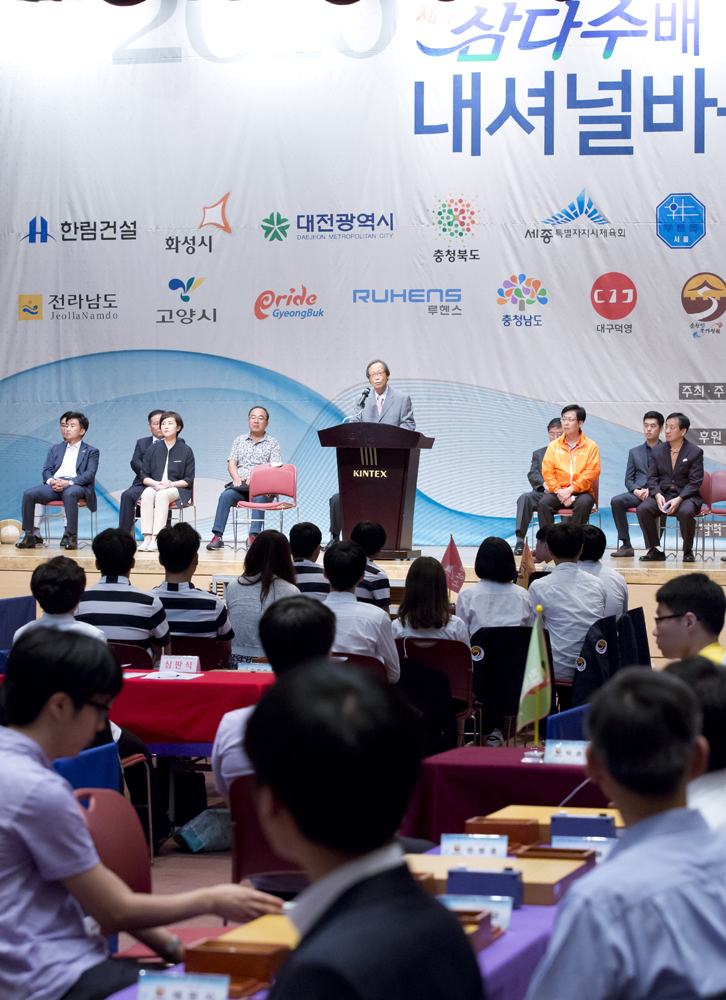 [서울=eoimage] 임준선기자 = 10일오후 일산 코엑스 제1전시장 그랜드볼륨에서 2016 제주삼다수배 내셔널바둑리그 고양경기 12-13라운드에서 신상철 대한바둑협회장이 개회사를 하고 있다.