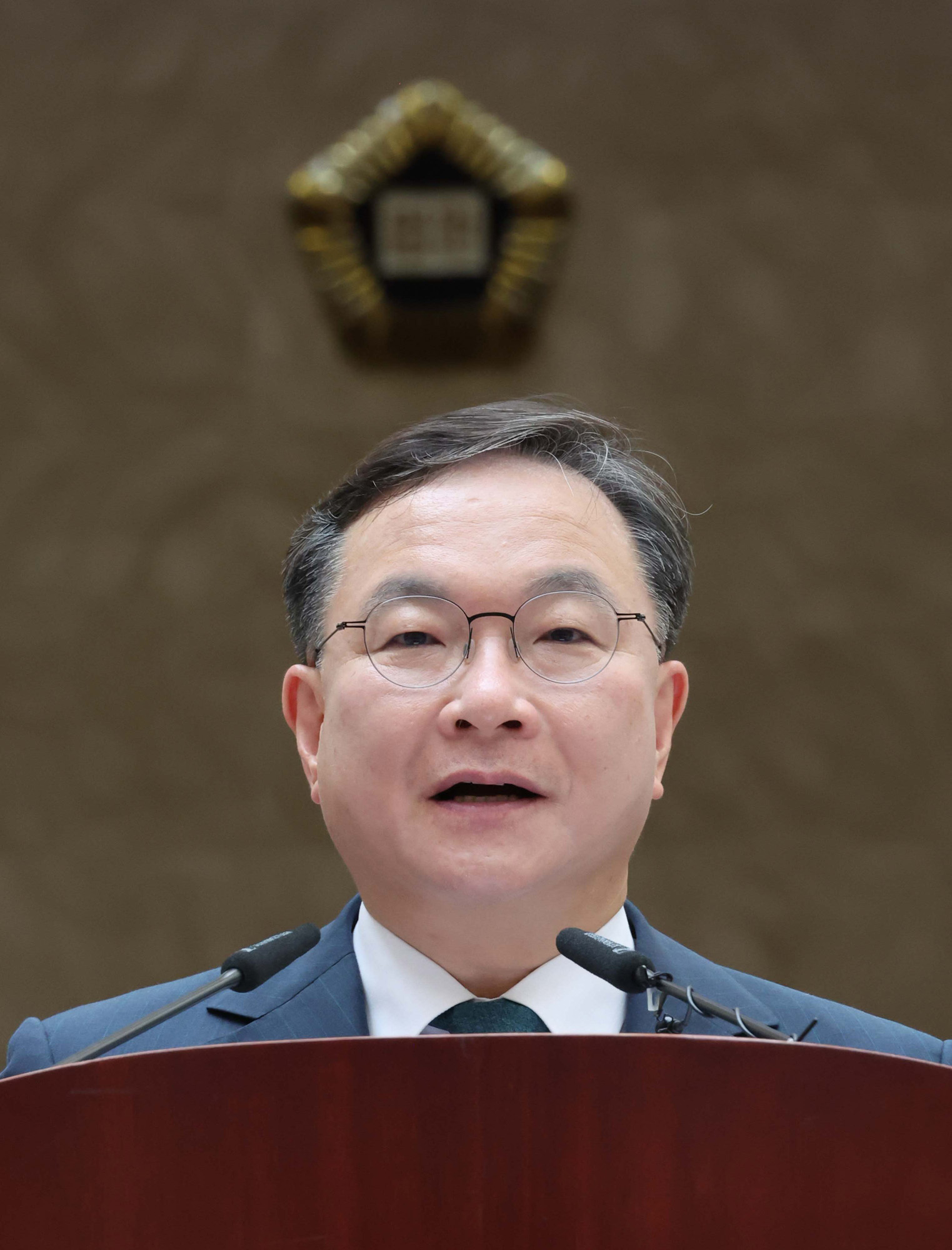 박영재 신임 대법관이 2일 서울 서초구 대법원에서 열린 대법관 취임식에서 취임사를 하고 있다. 2024.8.2 사진공동취재단