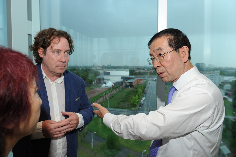 북미를 순방 중인 박원순 서울시장이 8일(현지시간) 캐나다 퀘벡 몬트리올에 있는 '태양의 서커스' 본사를 방문해 서커스 산업의 가능성을 확인하고 서울에 적용할 방안을 모색했다. 서울시 제공
