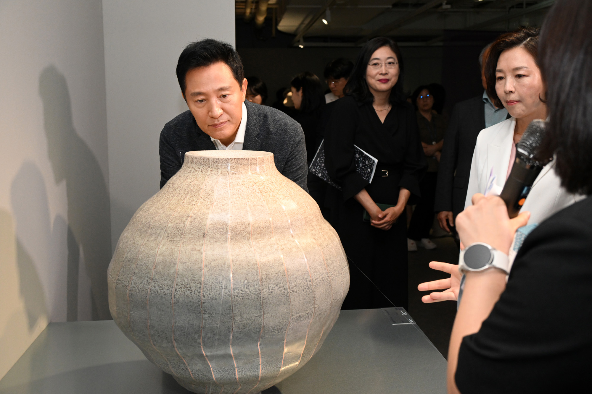 오세훈 서울시장이 26일 오후 서울공예박물관에서 개최된 '제1회 서울시 유리지 공예상' 시상식에 참석하고 있다. 서울시 제공