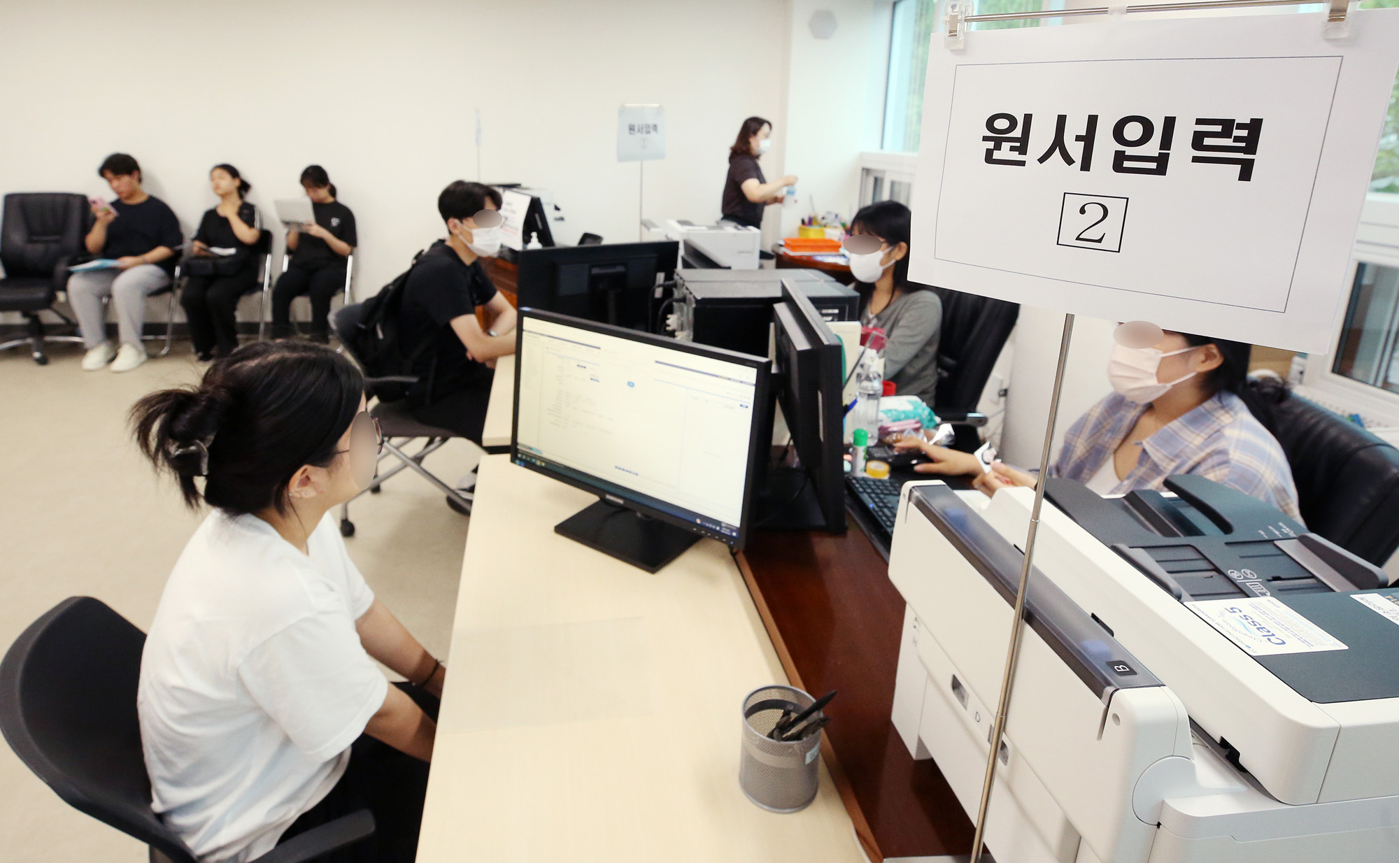 2025학년도 대학수학능력시험 응시원서 접수 시작일인 22일 서울 도봉구 북부교육지원청에서 학생들이 원서 접수를 하고 있다. 2024. 08. 22 사진공동취재단
