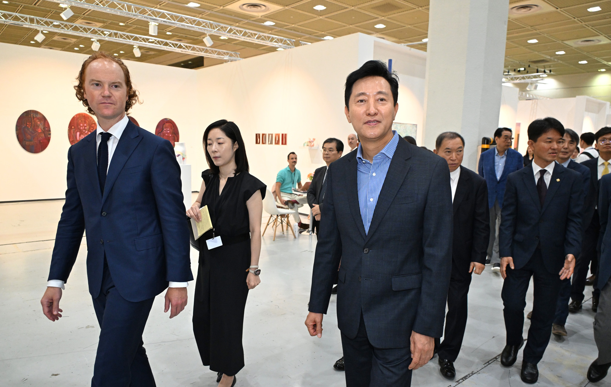 오세훈 서울시장이 4일 코엑스에서 개최된 '키아프·프리즈 서울 2024' 개막행사에 참석하고 있다. 서울시 제공