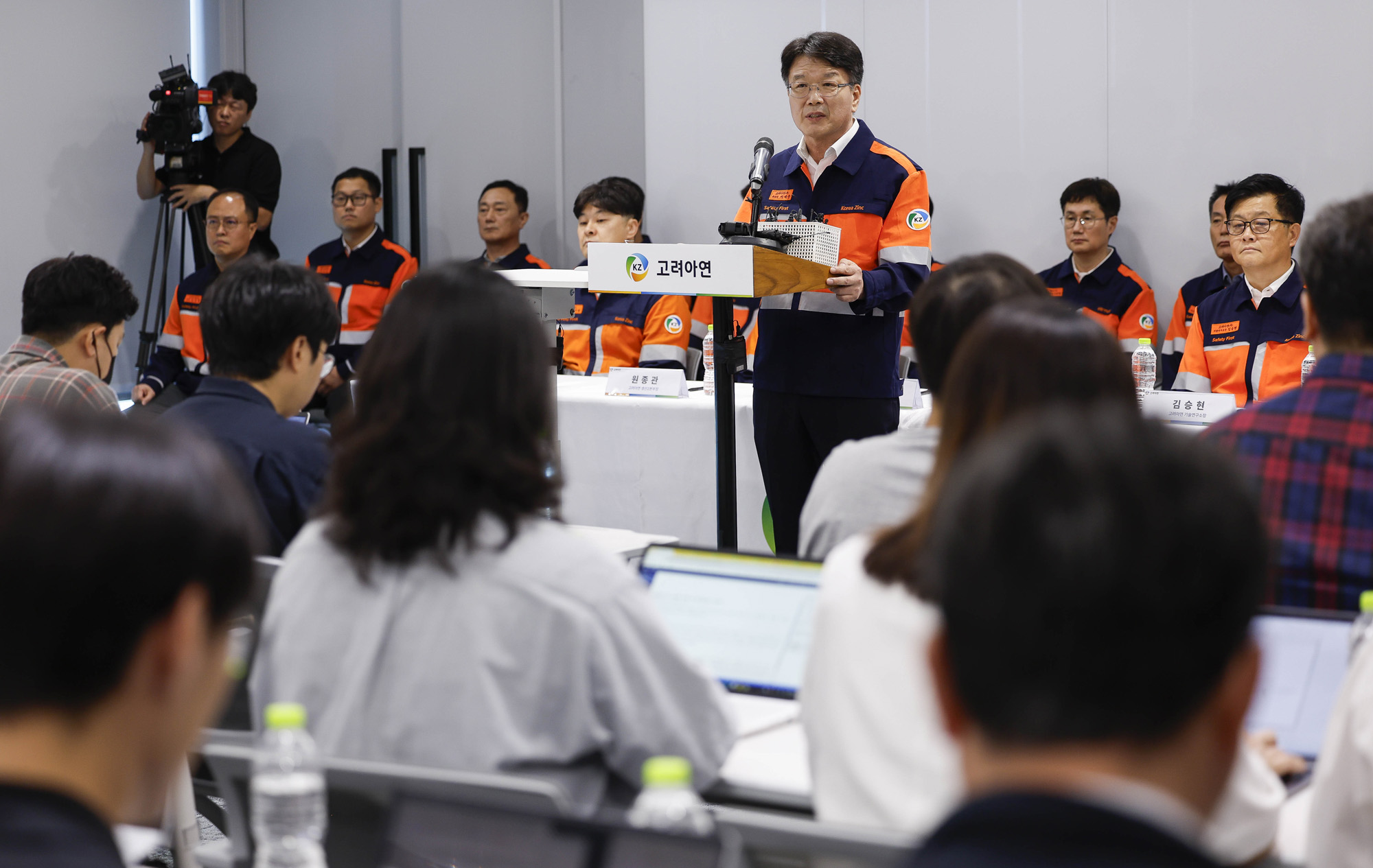 이제중 고려아연 부회장이 24일 서울 종로구 고려아연에서 열린 MBK·영풍과의 경영권 분쟁 관련 기자회견에서 입장을 밝히고 있다. 2024. 09.24 사진/임준선기자