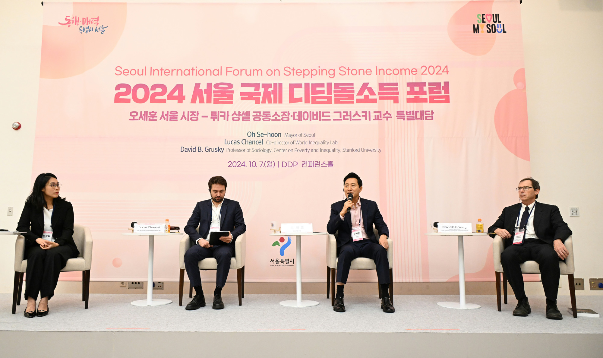 오세훈 서울시장이 7일 서울 중구 동대문디자인플라자(DDP)에서 열린 '2024 서울 국제 디딤돌소득 포럼'에 참석하고 있다. 서울시 제공