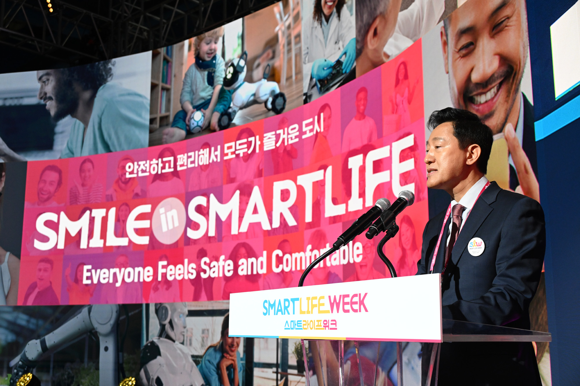 오세훈 서울시장이 10일 서울 강남구 코엑스에서 열린 스마트라이프위크(SLW) 개막식에 참석하고 있다. 서울시 제공