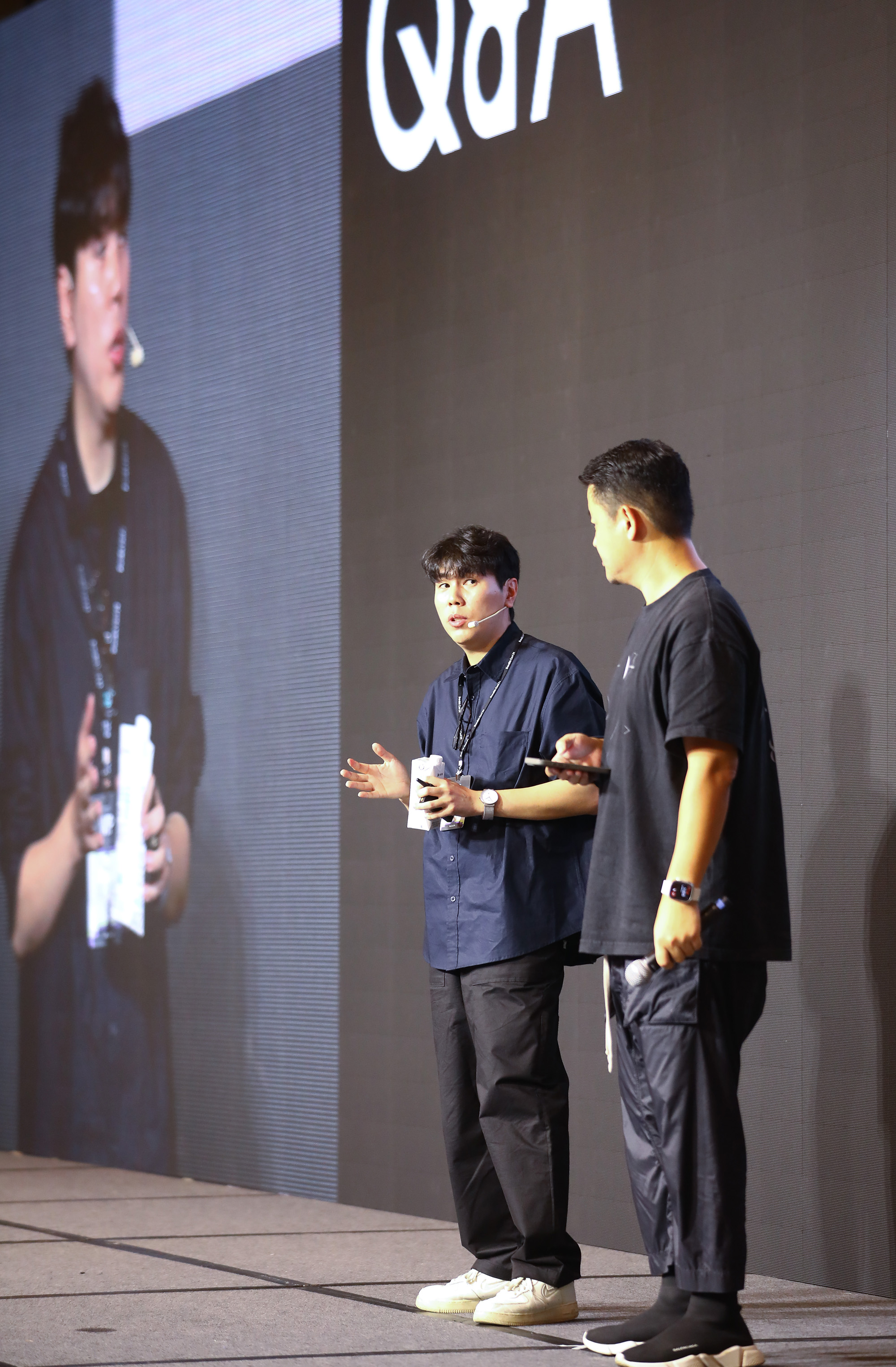 17일 서울 종로구 포시즌스 호텔 서울에서 '< >으로 브랜드를 디자인하다' 주제로 브랜드비즈 컨퍼런스 2024가 열리는 가운데 장기원 PLUS X 크리에이티브 디렉터가 강연을 마치고 Q&A 를 하고 있다. 2024.10.17 사진/임준선기자