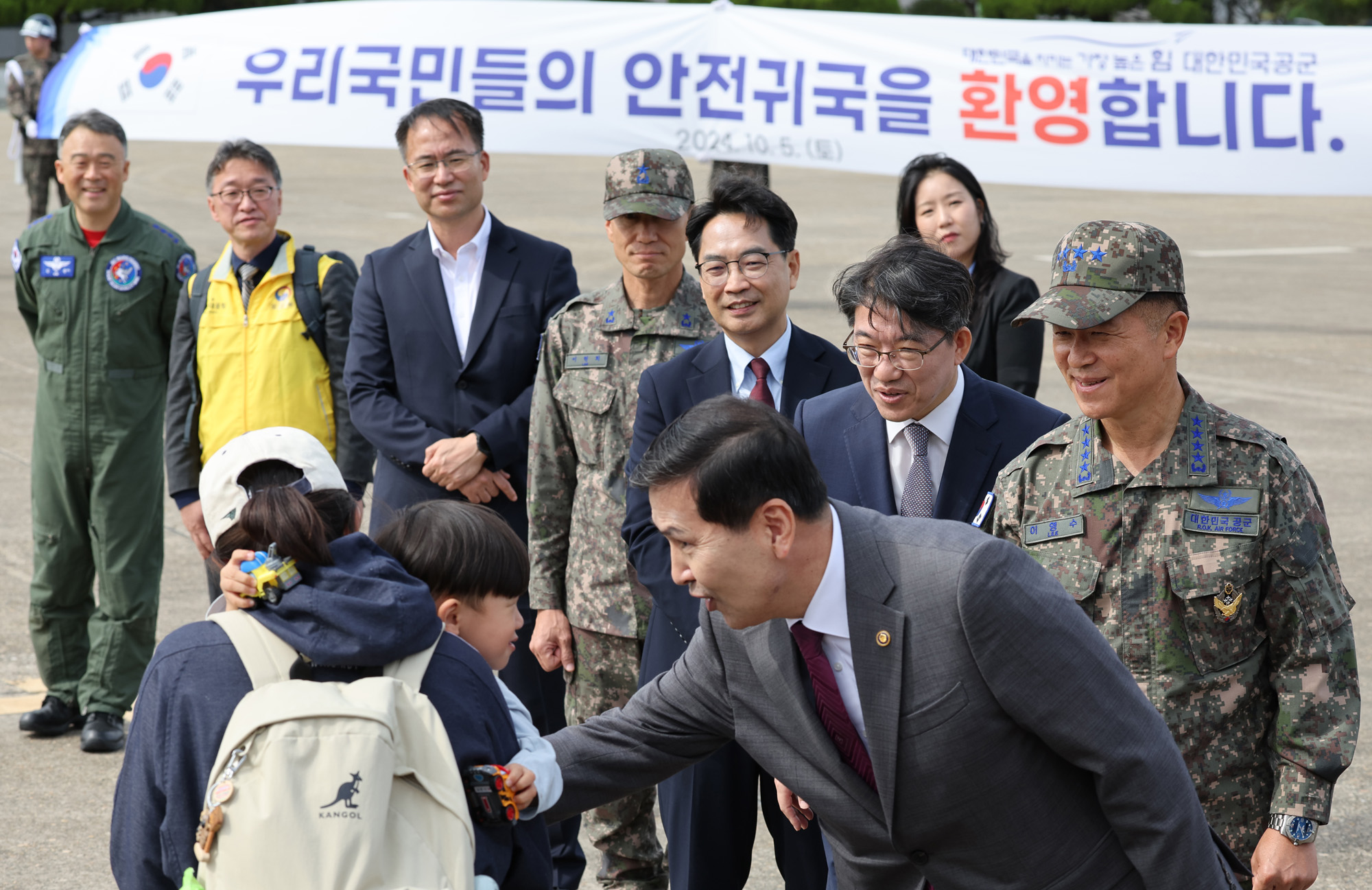 무장단체 헤즈볼라를 상대로 한 이스라엘의 지상작전이 진행 중인 레바논 체류 국민들이 5일 오후 서울공항에 도착한 군수송기에서 내리고 있다. 2024.10.5