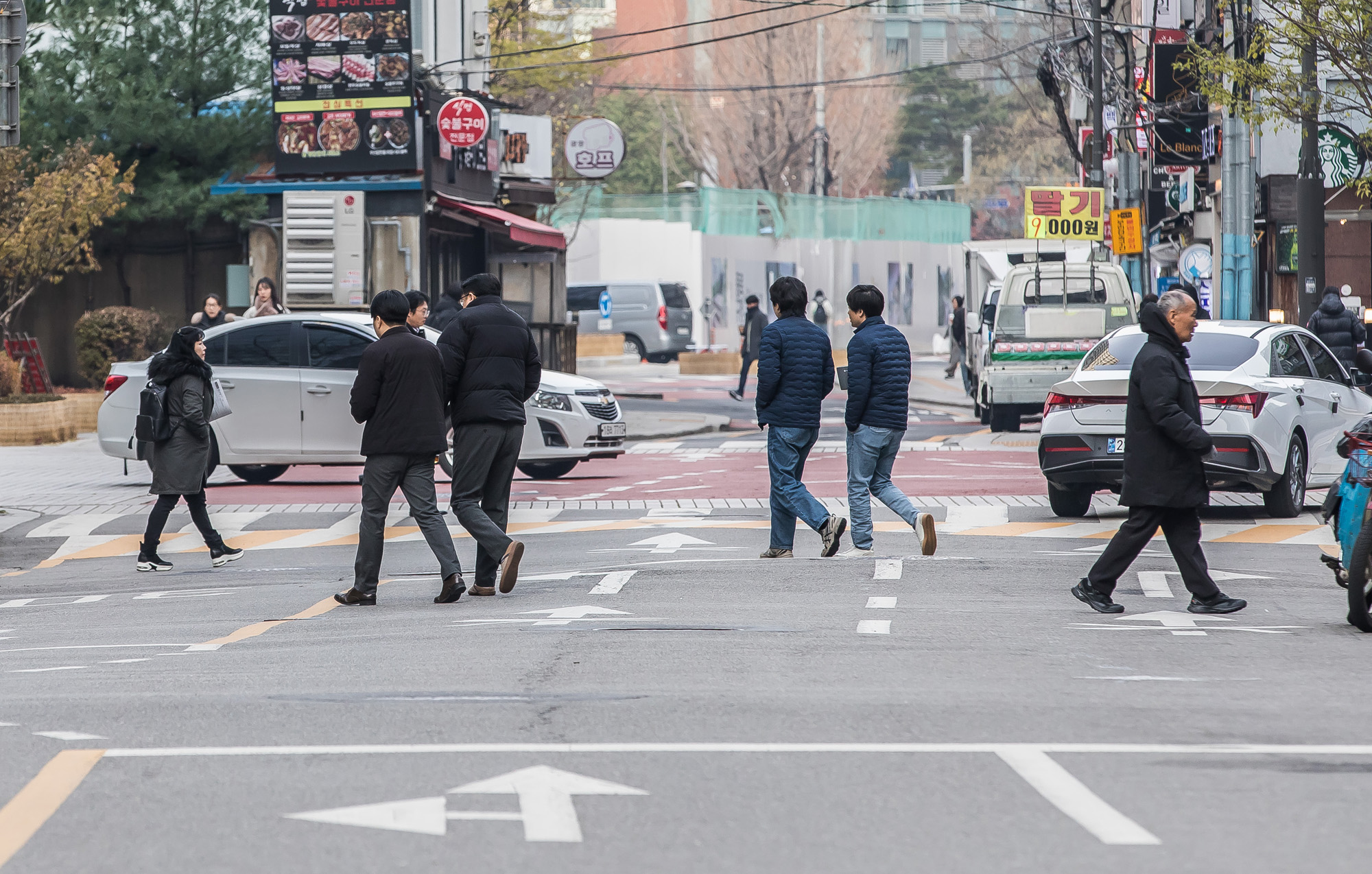 [서울=eoimage] (시사저널) 최준필 기자 = 11일 오전 서울 종로구의 한 횡단보도를 직장인들이 건너고 있다.(인물 모자이크 요망) 2024.12.11. eomaster@eoimage.com