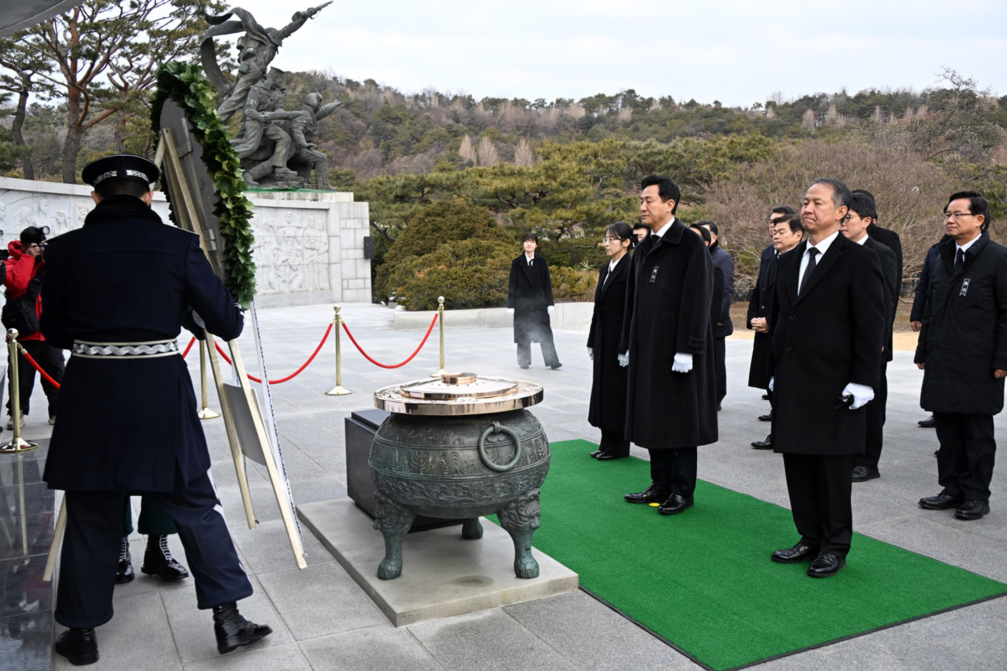 오세훈 서울시장은 2025년 을사년(乙巳年) 새해 첫날인 1월 1일(수) 오전 9시 30분, 국립서울현충원(동작구 현충로 210)을 찾아 순국선열과 호국영령의 숭고한 뜻을 기리고 현충탑에서 헌화·분향했다. 서울시 제공