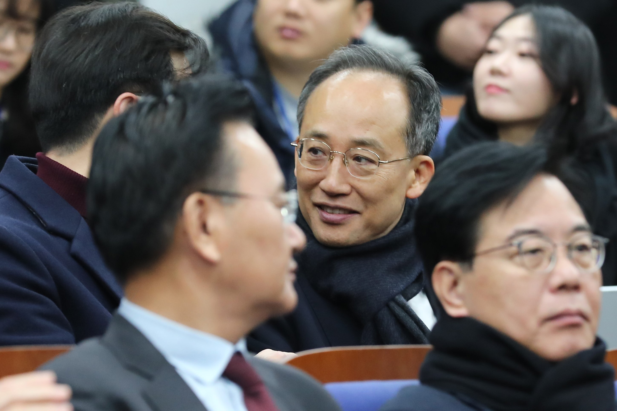 [eoimage=서울] 박은숙 기자 = 국민의힘 추경호 전 원내대표가 8일 국회에서 열린 의원총회에 참석해 의원들과 인사하고 있다. 2025. 1. 8. eomaster@eoimage.com