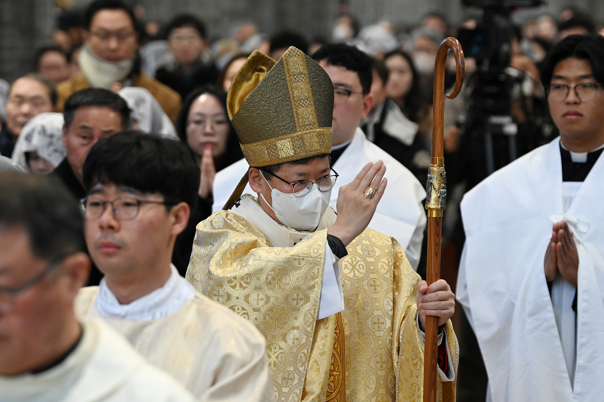 천주교 서울대교구장 정순택 대주교가 25일 서울 중구 명동성당에서 주님 성탄 대축일 낮 미사를 집전하고 있다.