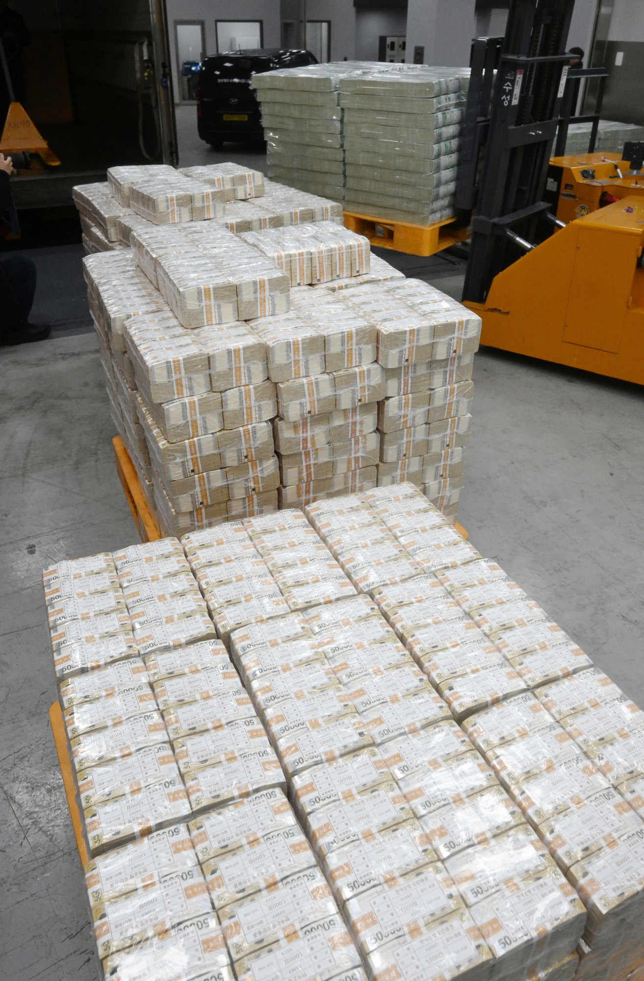 설 명절을 앞둔 14일 서울 중구 한국은행 본점에서 현금 운송 관계자들이 시중은행에 공급될 설 자금 방출 작업을 하고 있다. 2025.1.14.