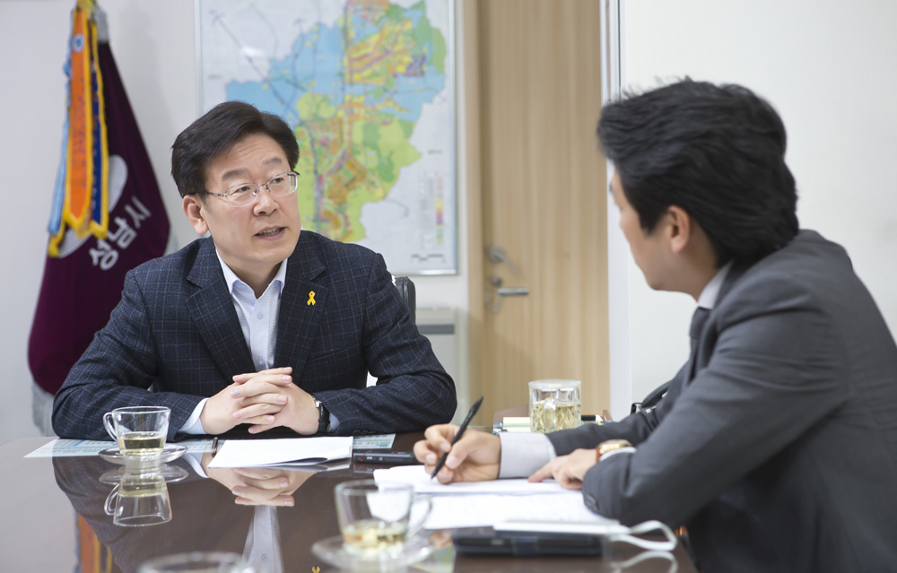 [성남=eoimage] 임준선 기자 =18일 오후 성남시청에서 이재명 성남시장이 일요신문과 인터뷰를 하고 있다. 2016.10.18