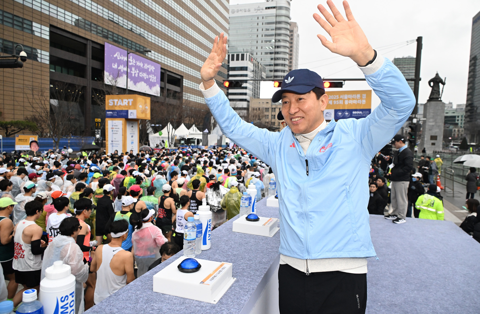 오세훈 서울시장은 16일(일) 07시 50분, 광화문광장에서 열린 ‘2025 서울마라톤’을 찾아 대회 개최를 축하하고 참가자들을 응원하며 도심을 함께 달렸다. 서울시 제공