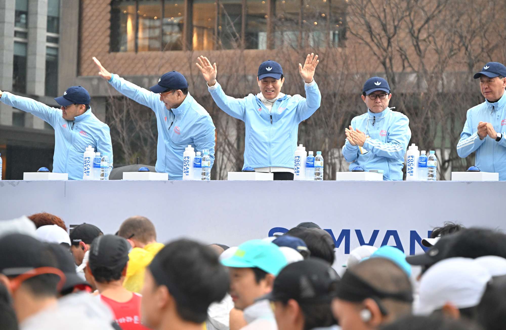 오세훈 서울시장은 16일(일) 07시 50분, 광화문광장에서 열린 ‘2025 서울마라톤’을 찾아 대회 개최를 축하하고 참가자들을 응원하며 도심을 함께 달렸다. 서울시 제공
