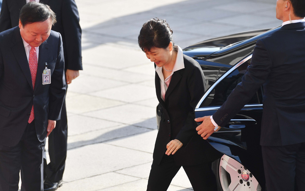 박근혜 대통령이 24일 서울 여의도동 국회에서 열린 2017년도 예산안 관련 시정연설을 위해 본청으로 들어서고 있다. 박 대통령은 연설에서 경제 위기 극복을 위한 정부 정책과 이에 따른 새해 예산안 편성 방향을 설명하고 국회 협조를 요청했다. 신태현 기자 holjjak@