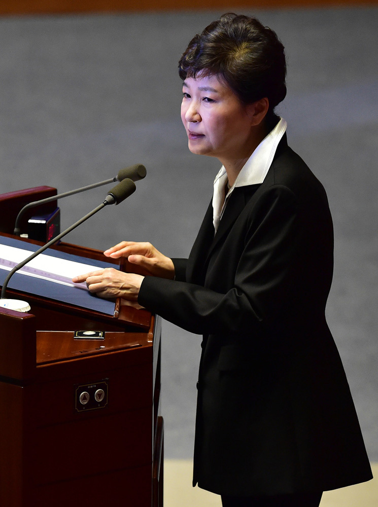 아시아투데이 이병화 기자 = 박근혜 대통령이 24일 국회 본회의장에서 2017년도 정부 예산안 관련 시정연설에서 "임기 내에 헌법 개정을 완수하기 위해 정부 내에 헌법 개정을 위한 조직을 설치해서 국민의 여망을 담은 개헌안을 마련하도록 하겠다"고 밝히고 있다. /이병화 기자photolbh@