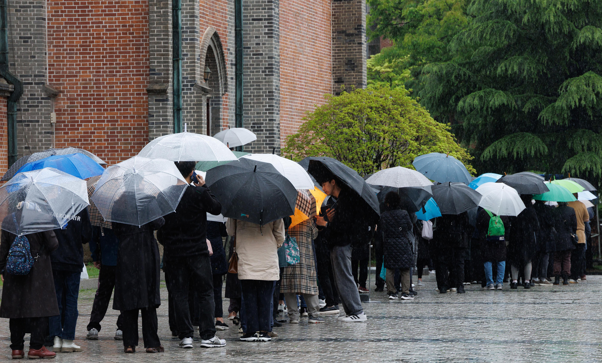 22일 오후 지난 21일(현지시간) 선종한 프란치스코 교황의 빈소가 마련된 서울 중구 명동대성당에서 조문객들이 추모를 위해 줄을 서고 있다. 2025.04.22 사진공동취재단