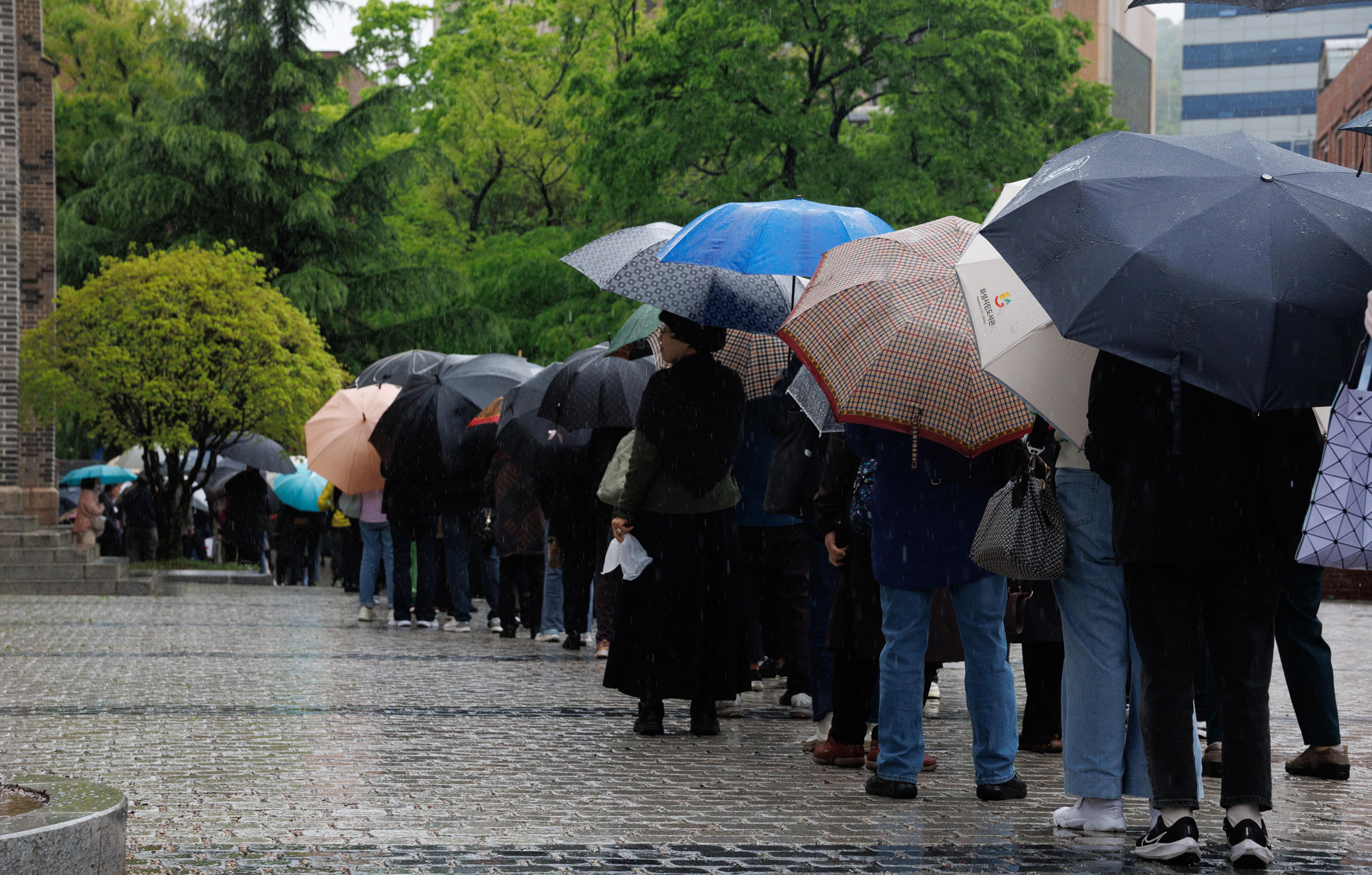 22일 오후 지난 21일(현지시간) 선종한 프란치스코 교황의 빈소가 마련된 서울 중구 명동대성당에서 조문객들이 추모를 위해 줄을 서고 있다. 2025.04.22 사진공동취재단