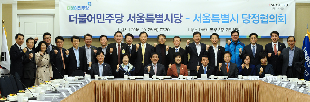 박원순 서울시장이 25일 오전 서울 여의도 국회에서 열린 더불어민주당 서울특별시당 당정협의회에 참석해 인사말을 하고 있다. 서울시 제공