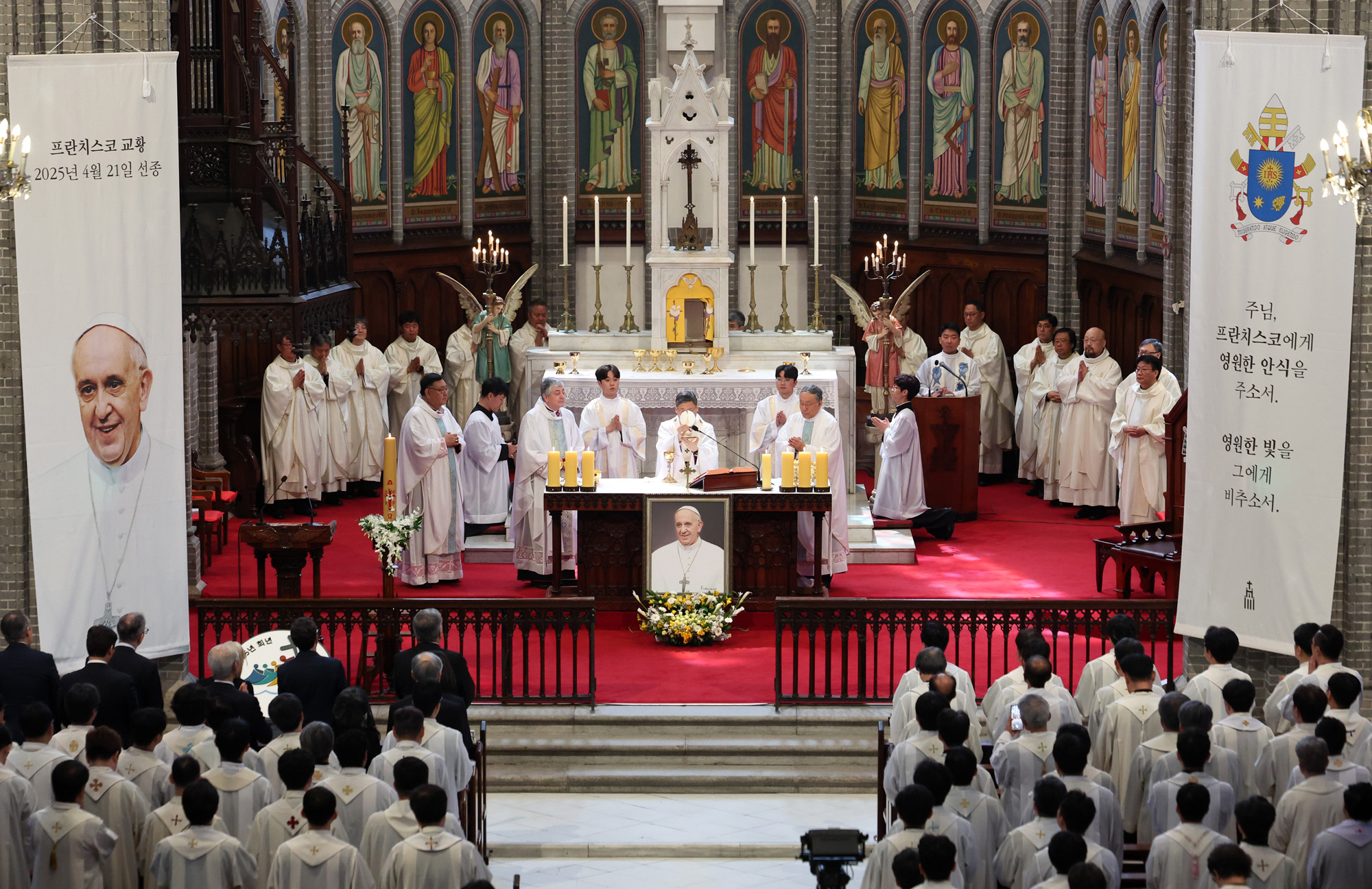 24일 오전 서울 중구 명동대성당에서 천주교 서울대교구장 정순택 대주교 주례로 프란치스코 교황 추모 미사가 거행되고 있다. 2025.04.24. 사진공동취재단