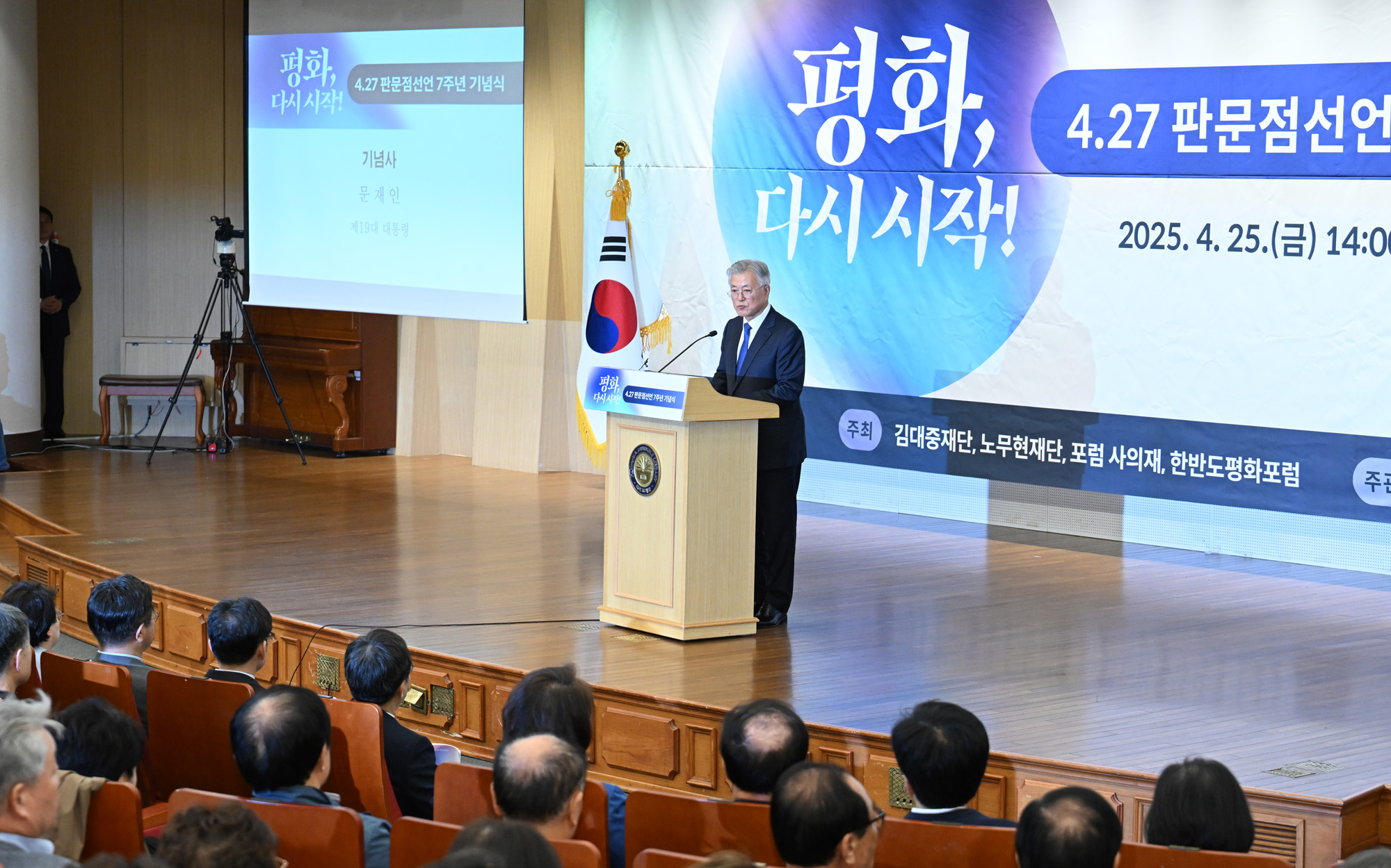 문재인 전 대통령이 25일 서울 여의도 국회도서관에서 열린 4.27 판문점선언 7주년 기념식에 참석해 기념사를 하고 있다. 2025.04.25. 국회사진취재단