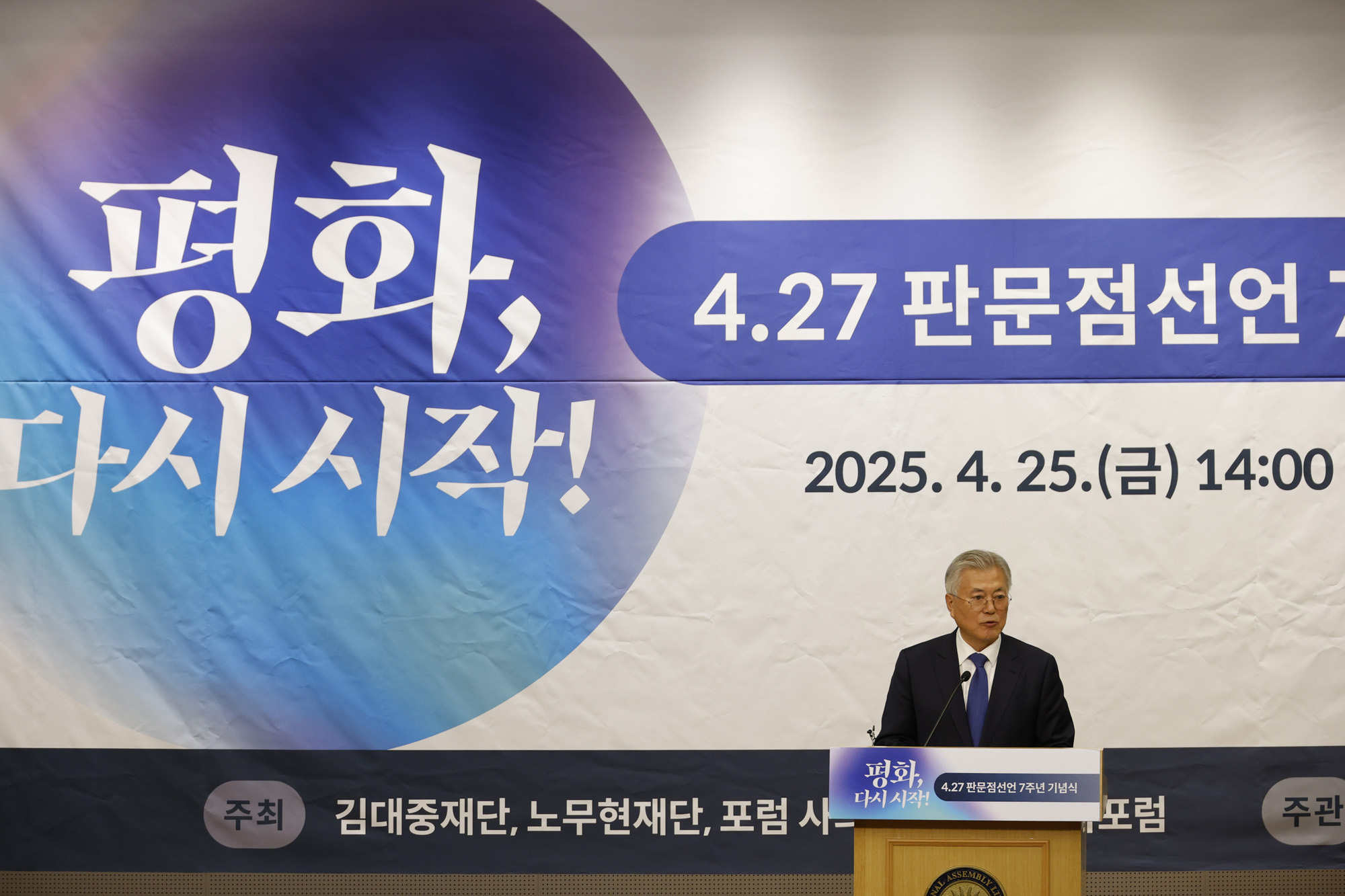 문재인 전 대통령이 25일 국회도서관에서 열린 4.27판문점선언 7주년 기념식에서 기념사를 하고 있다. 2025.04.25. 국회사진취재단