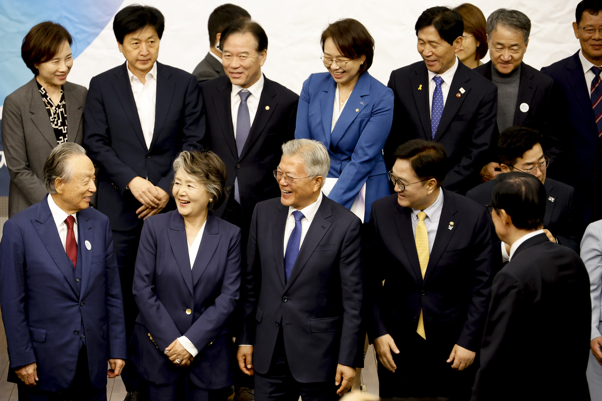 문재인 전 대통령 내외와 우원식 국회의장 등 참석자들이 25일 국회도서관에서 열린 4.27판문점선언 7주년 기념식에서 기념촬영을 하고 있다. 2025.04.25. 국회사진취재단
