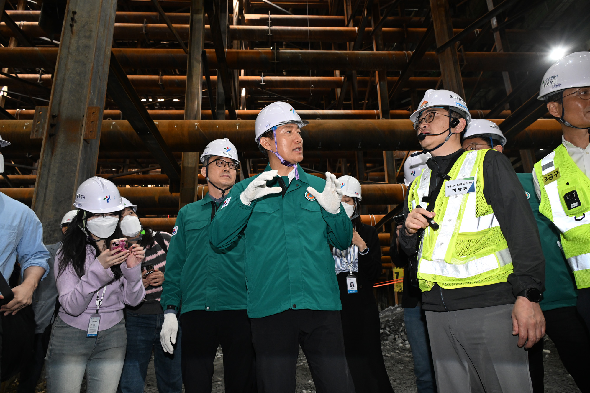 오세훈 서울시장이 23일(수) 영동대로 지하공간 복합개발사업 지하 암반 굴착 현장을 점검하고 있다. 서울시 제공