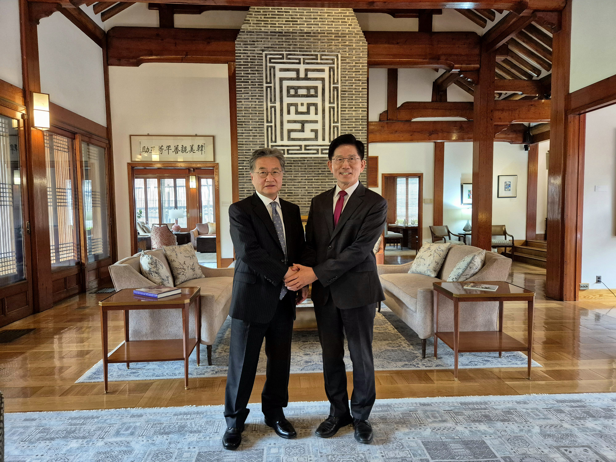 15일 국민의힘 김문수 대선후보가 조셉 윤 주미대사 대리와 만나 오찬 겸 회담을 하고 있다. 사진 주한미국 대사관제공