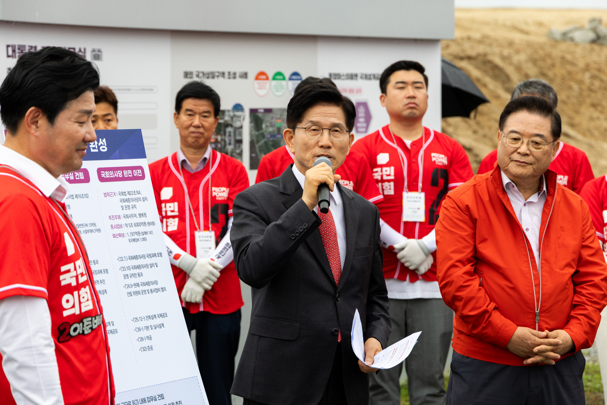 국민의힘 김문수 대선 후보가 16일 국회 세종의사당 부지에서 국회 이전 관련 행정수도 공약을 발표하고 있다.