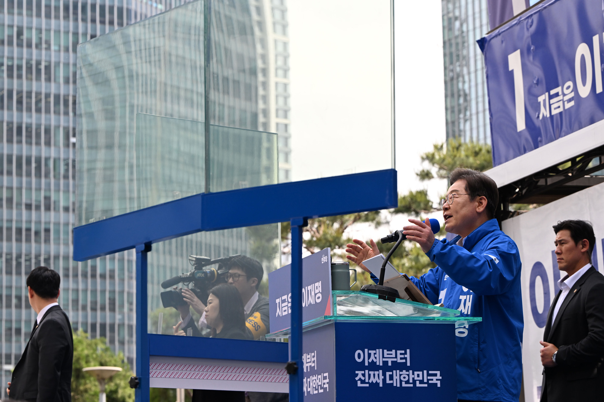 더불어민주당 이재명 대선후보 용산집중유세, 방탄유리