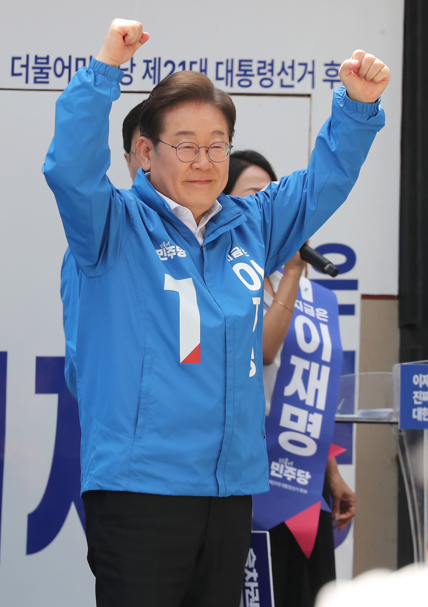더불어민주당 이재명 대선 후보가 19일 서울 용산역 광장에서 열린 집중유세에 참석, 방탄유리가 설치된 유세차량에서 유권자들의 지지를 호소하고 있다. 2025.05.19 /