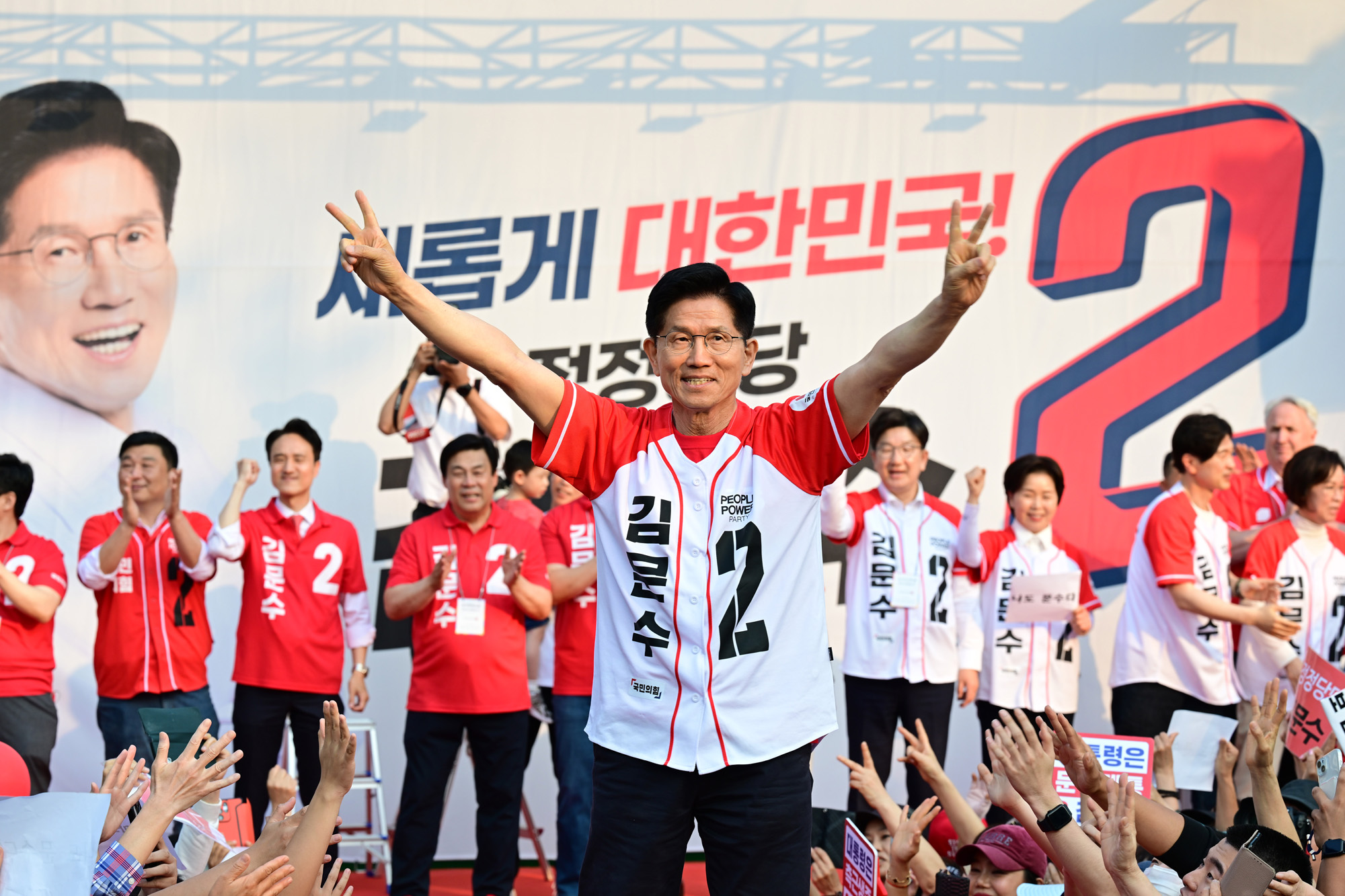 김문수 국민의힘 대통령선거 후보가 26일 오후 서울 도봉구 방학사거리에서 노원·도봉·강북 집중유세에 나서고 있다.