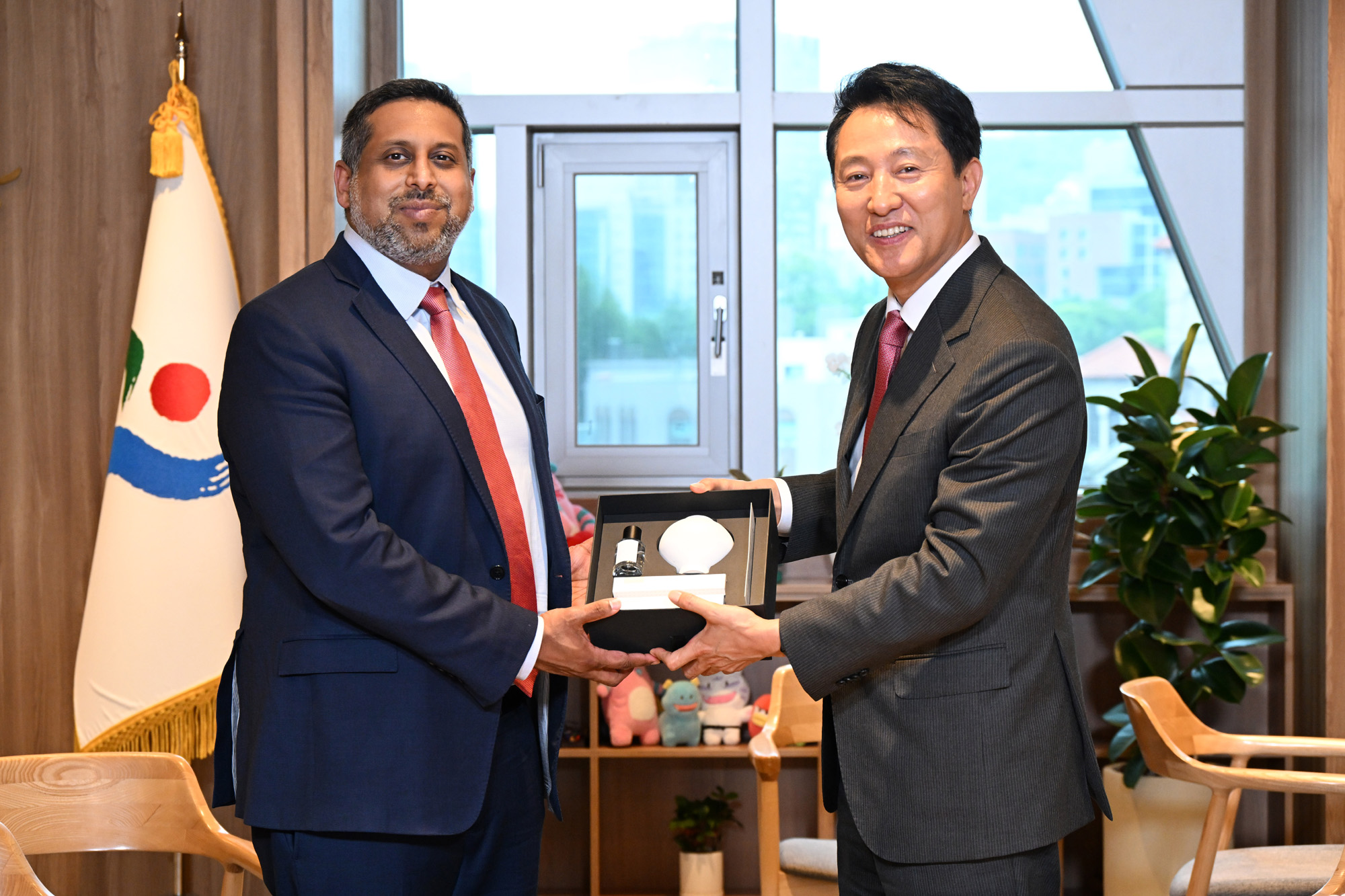 오세훈 서울시장은 23일(금) 10시 20분, 빌라스 다르 패트릭 J. 맥거번 재단 대표를 만나 서울의 AI·스마트도시 정책에 대해 의견을 나눴다. 서울시 제공