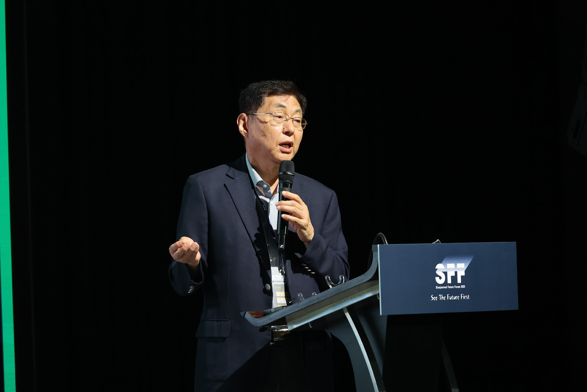 [서울=eoimage] (시사저널) 임준선 기자 = 28일 서울 여의도 페어몬트 앰배서더 서울 그랜드볼룸에서 열린 '시사저널 미래포럼 2025'에서 유회준 KAIST 인공지능반도체대학원장이 세션 3 강연을 하고 있다. 2025.05.28
