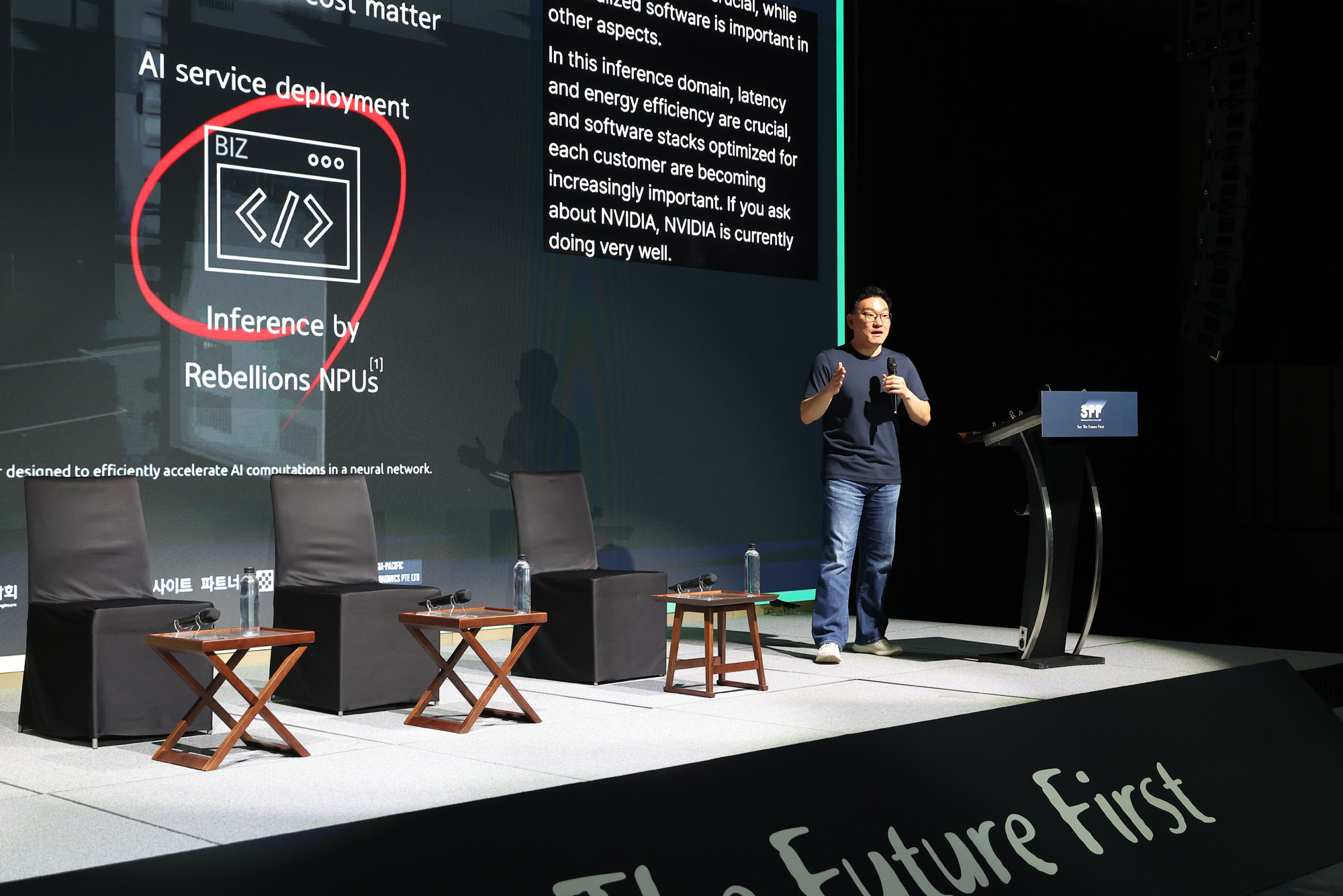 [서울=eoimage] (시사저널) 임준선 기자 = 28일 서울 여의도 페어몬트 앰배서더 서울 그랜드볼룸에서 열린 '시사저널 미래포럼 2025'에서 박성현 리벨리온 대표이 세션 3 강연을 하고 있다. 2025.05.28