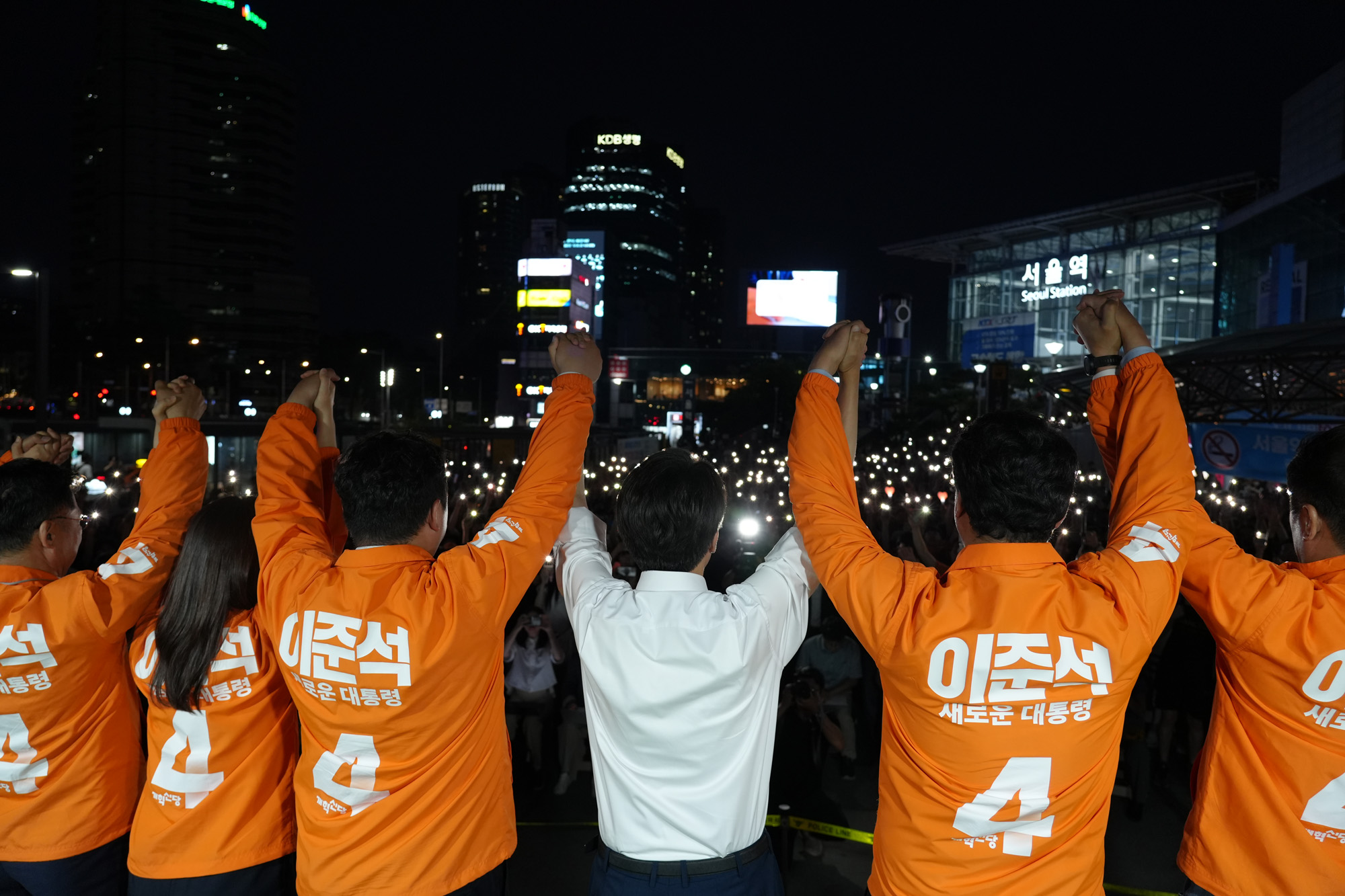 1일 오후 개혁신당 이준석 대선후보가 서울역 집중유세에서 연설을 하고 있다. 2025.06.01.