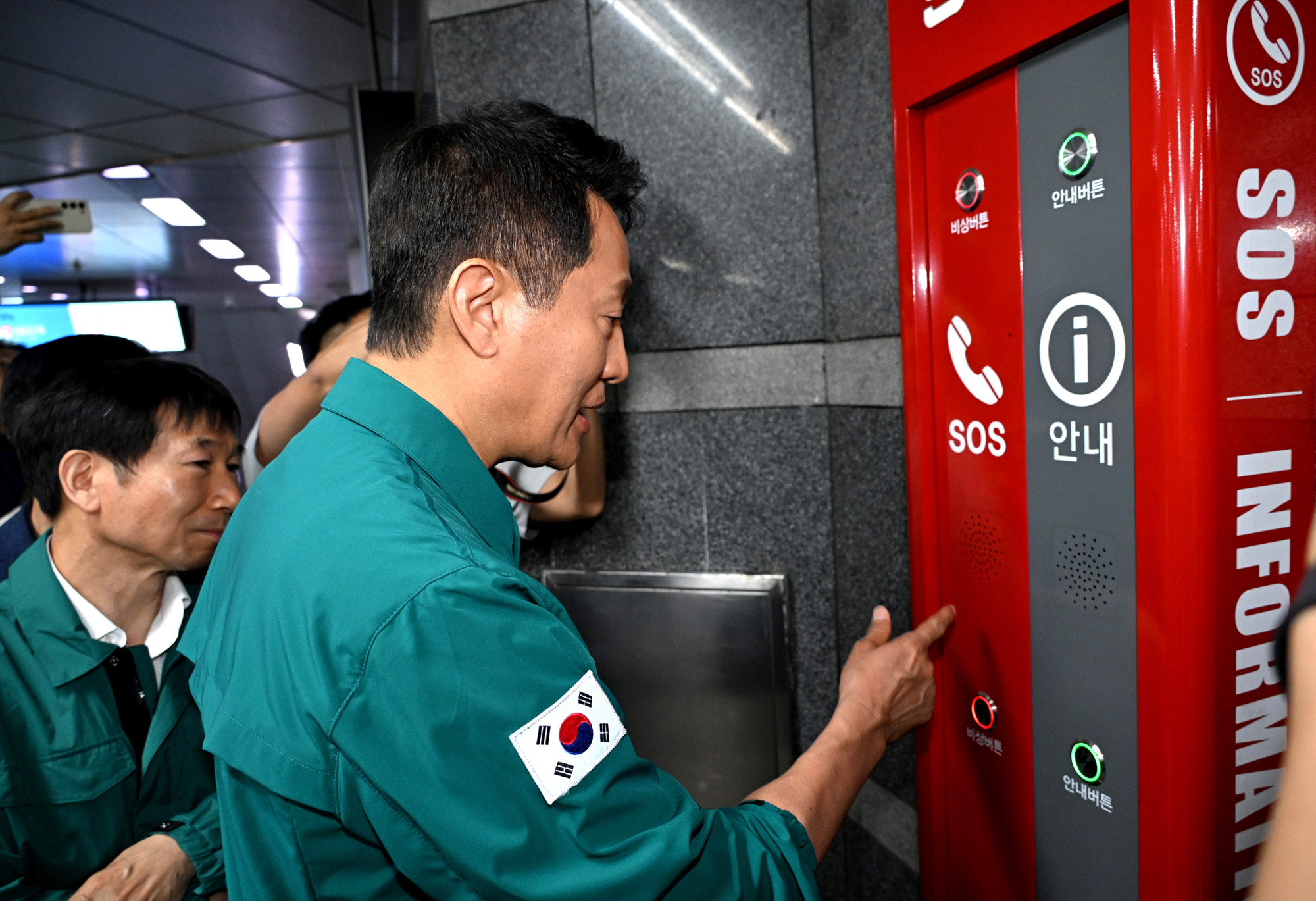 오세훈 서울시장은 제21대 대통령선거 본투표를 하루 앞둔 2일(월) 14시 지하철 3?4호선 ‘충무로역’과 필동제1투표소(중구 필동2가)를 방문, 다중밀집 지하철 역사 안전과 이동약자를 위한 임시기표소 설치 현황 등을 점검했다. 서울시 제공