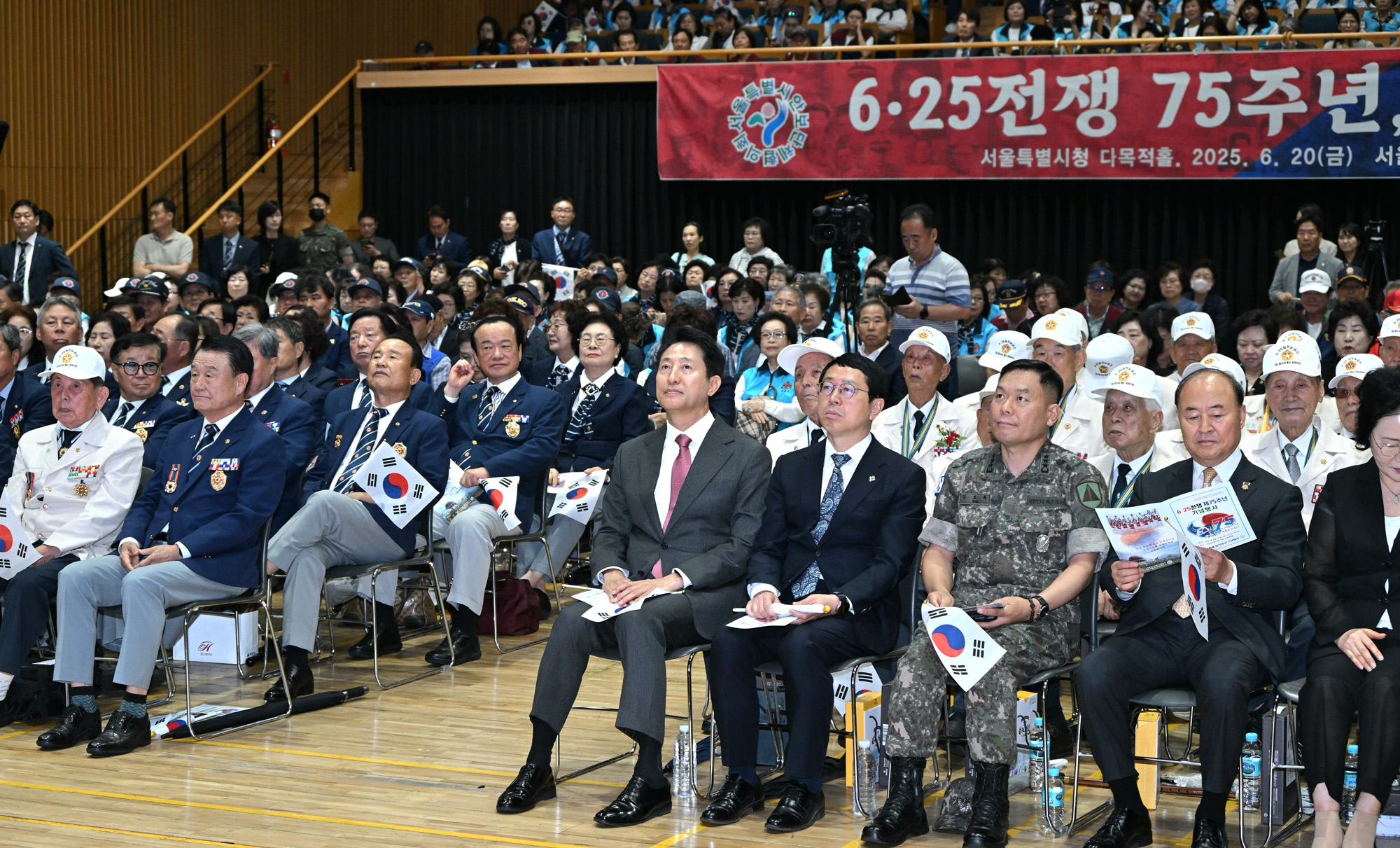 오세훈 서울시장이 서울시재향군인회가 주최하는 「제75주년 6·25전쟁 기념행사」에 참석하고 있다. 서울시 제공