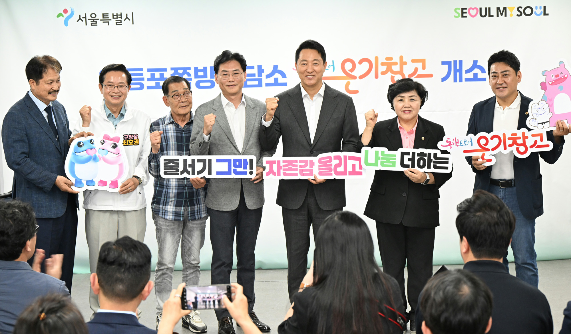 오세훈 서울시장이 23일 오전 10시 30분 영등포 쪽방촌에서 열린 ‘온기창고 3호점(영등포구 경인로 829, 1층)’ 개소식에 참석하고 있다. 서울시 제공