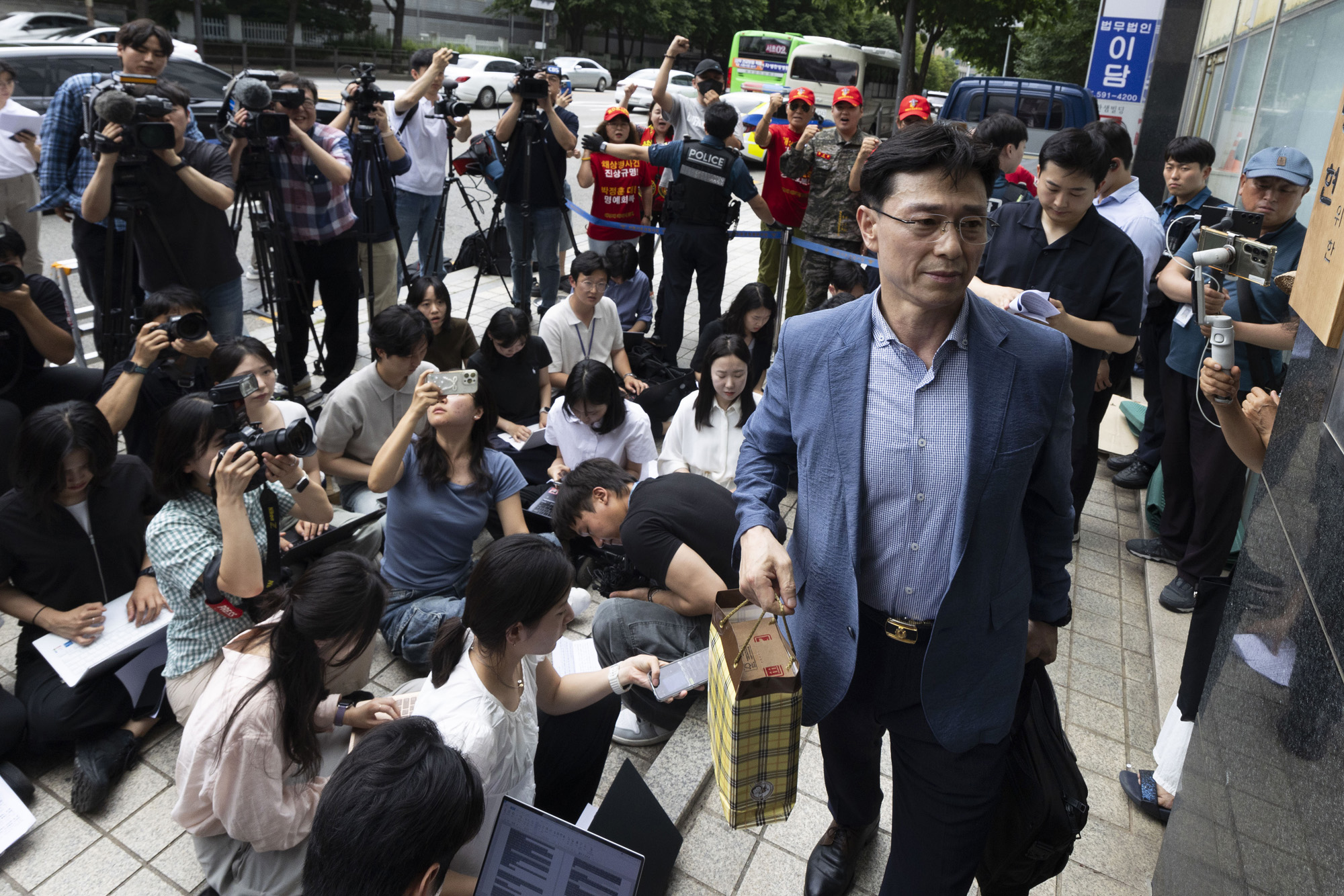 임성근 전 해병대 1 사단장이 2일 오후 서울 서초구 서초동 순직해병 특검 특검 사무실 앞에서 조사를 받기 전 기자회견을 하고 이동하고 있다.