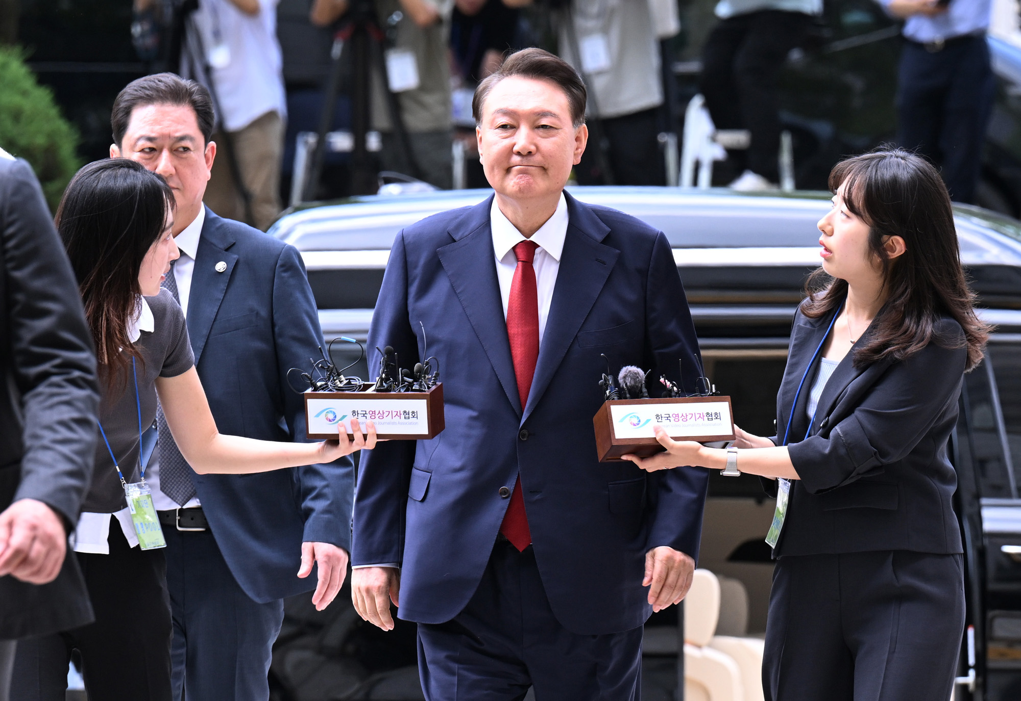 윤석열 전 대통령이 9일 오후 서울 서초구 서울중앙지방법원에서 열린 구속 전 피의자 심문(영장실질심사)에 출석하고 있다. 2025. 7. 9 사진공동취재단