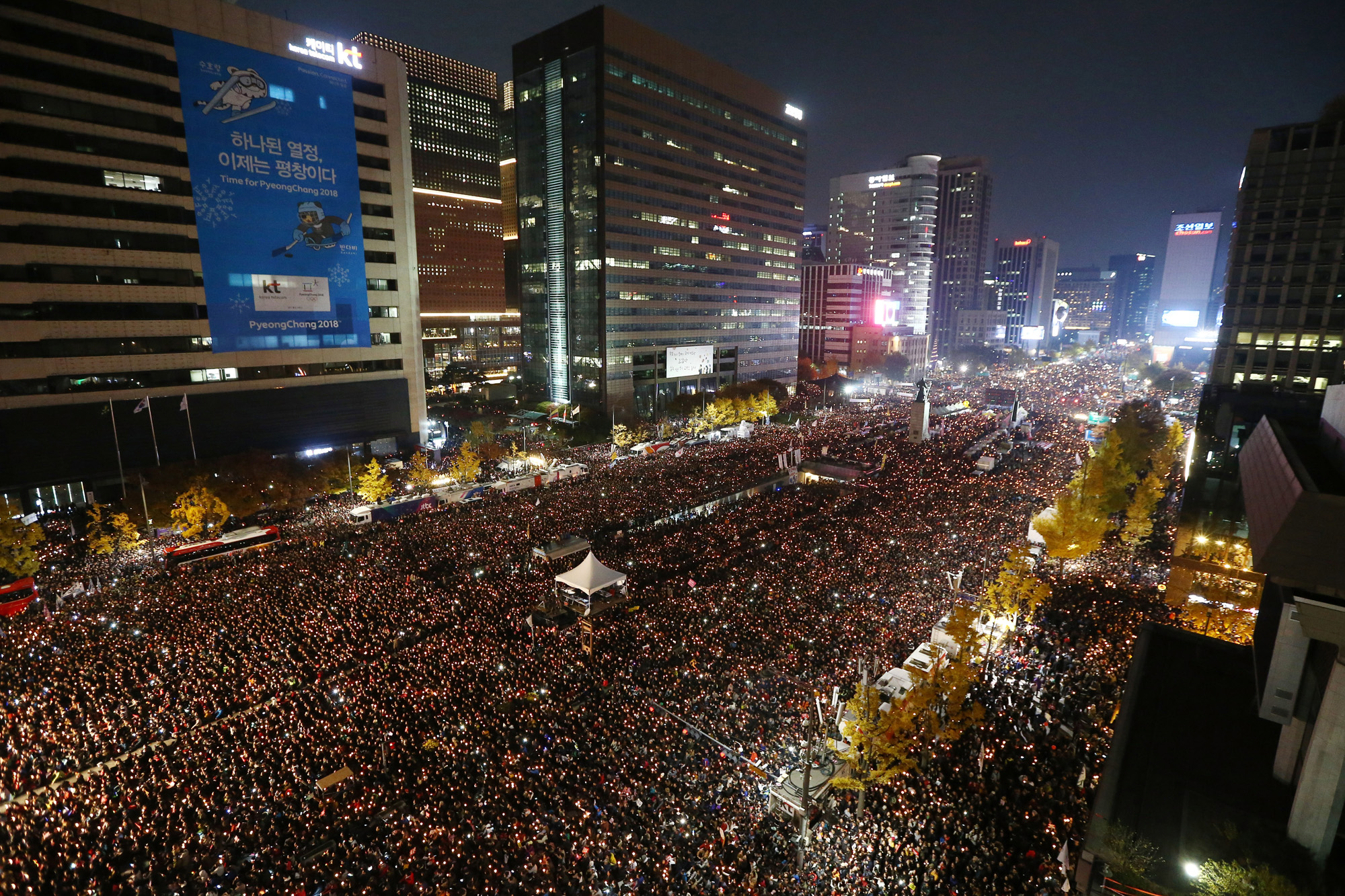 최순실 게이트 파문으로 박근혜 대통령의 하야를 촉구하는 시민들의 목소리가 커지고 있는 가운데 수많은 시민들이 12일 오후 서울 광화문 세종대로에서 박대통령의 퇴진을 촉구하는 촛불집회를 갖고 있다.