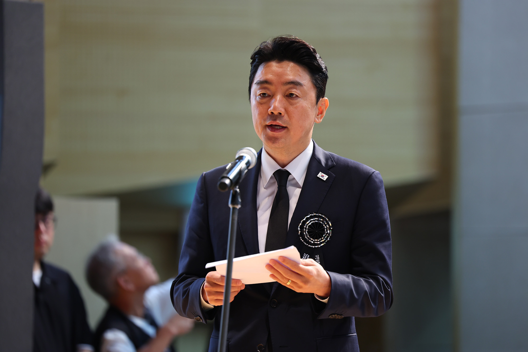 강훈식 대통령비서실장이 18일 서울 동작구 국립서울현충원 현충관에서 열린 김대중 전 대통령 서거 16주기 추모식에서 이재명 대통령의 추모사를 대독하고 있다. 2025.8.18