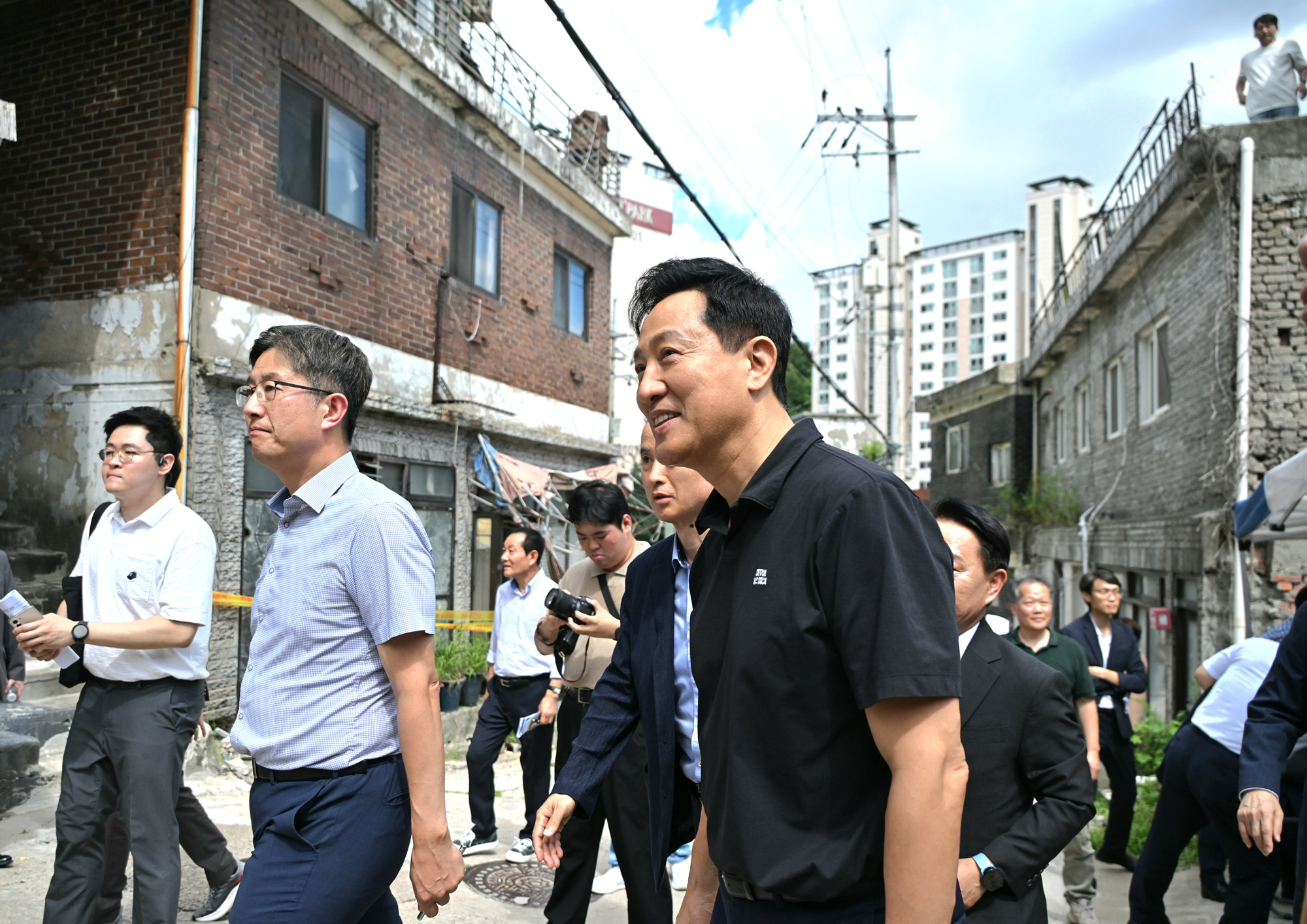 오세훈 서울시장이 19일(화) 오후 서대문구 현저동 모아타운 현장을 점검하고 있다. 서울시 제공