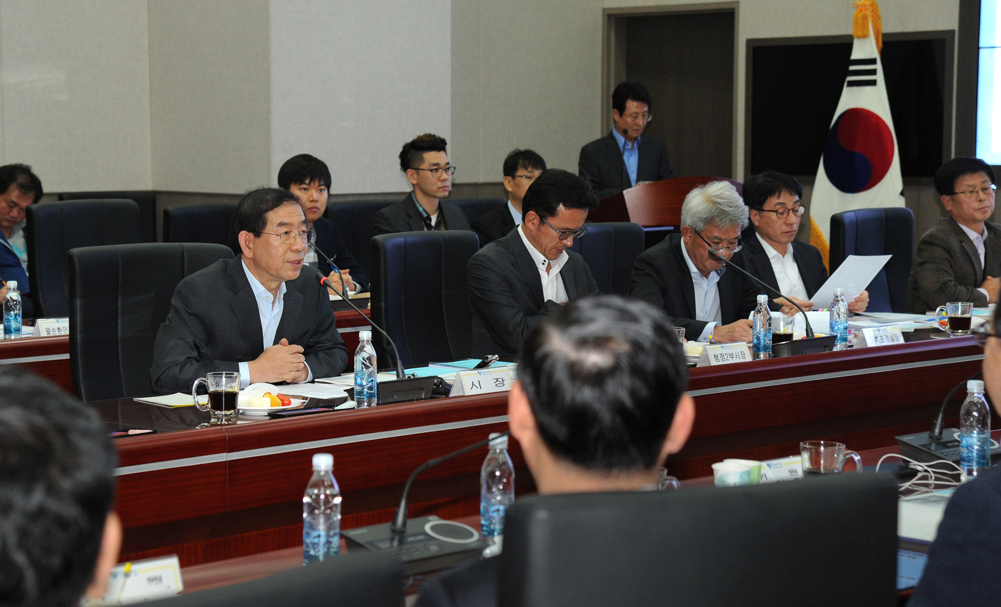 박원순 서울시장이 8일 오후 서울시청 충무기밀실에서 '제2차 안보정책포럼'을 주재하고 안보 관련 주요 현안을 논의했다. 서울시 제공