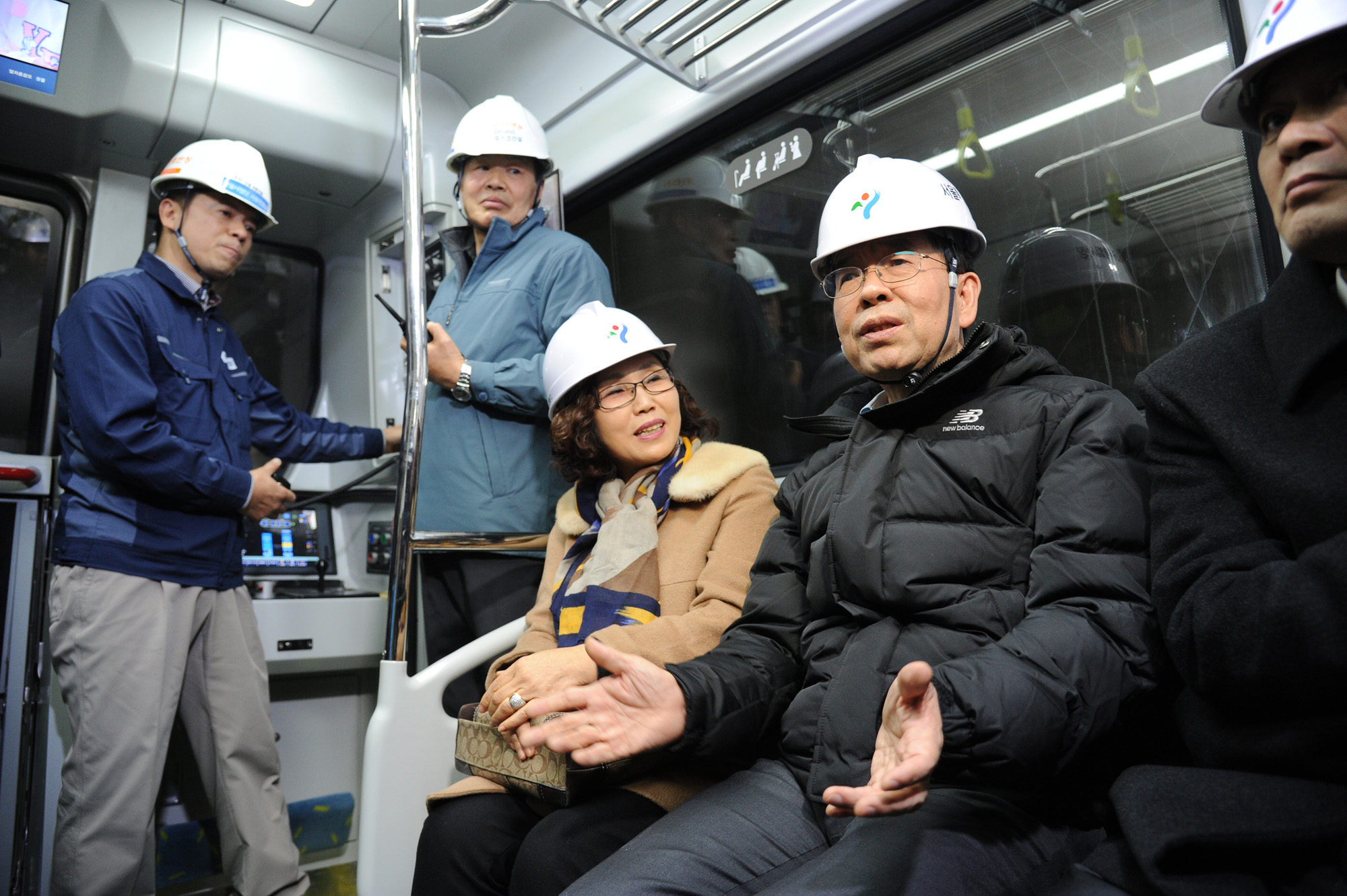 박원순 서울 시장은 9일 강북구 우이동 우이∼신설 경전철 시운전 차량에 탑승해 4개역을 이동하며 사업 전반을 점검한다. 서울시 제공