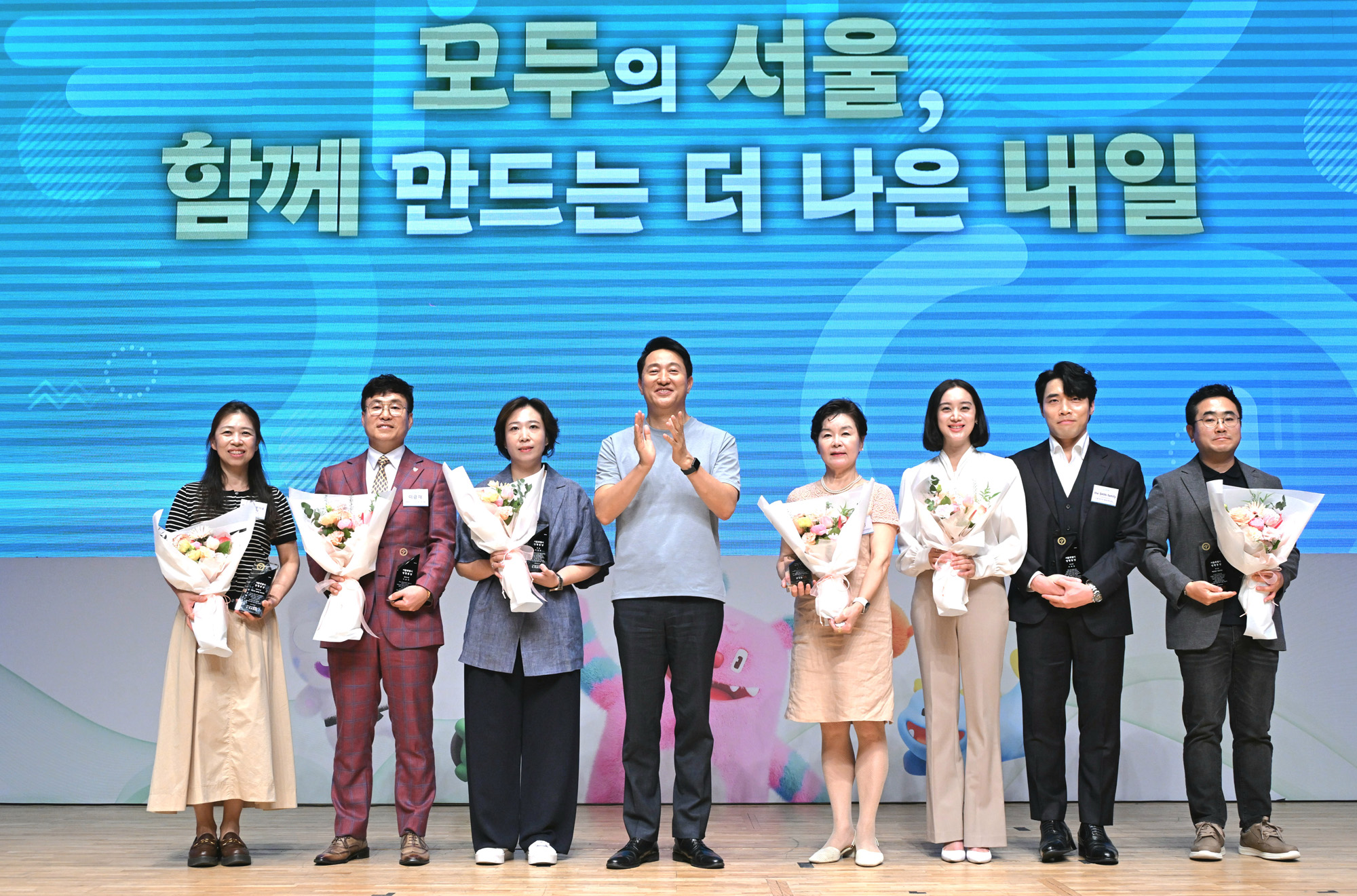 오세훈 서울시장이 2일(화) 서울시청에서 열린 '2025 서울여성대회'에서 '제22회 서울시 성평등상' 수상자와 기념사진을 촬영하고 있다. 서울시 제공